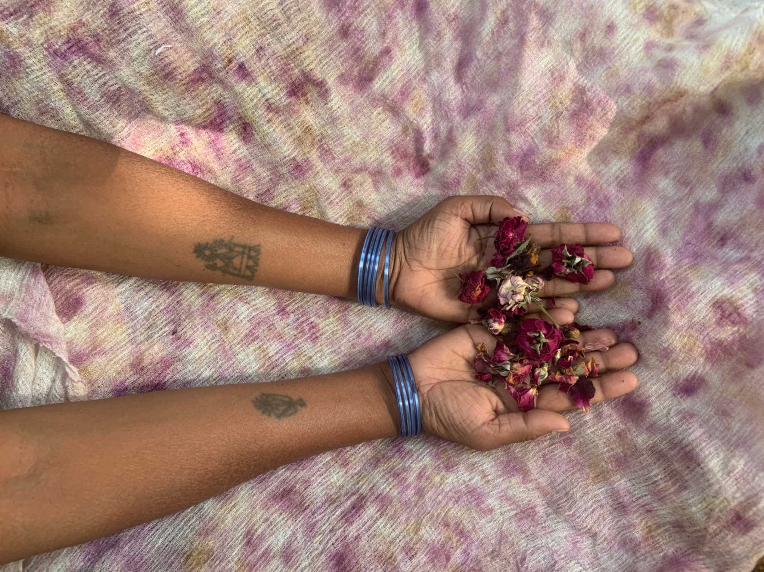 We provide free natural dyeing classes to marginalised women, who can eventually join kokūn and create with us.