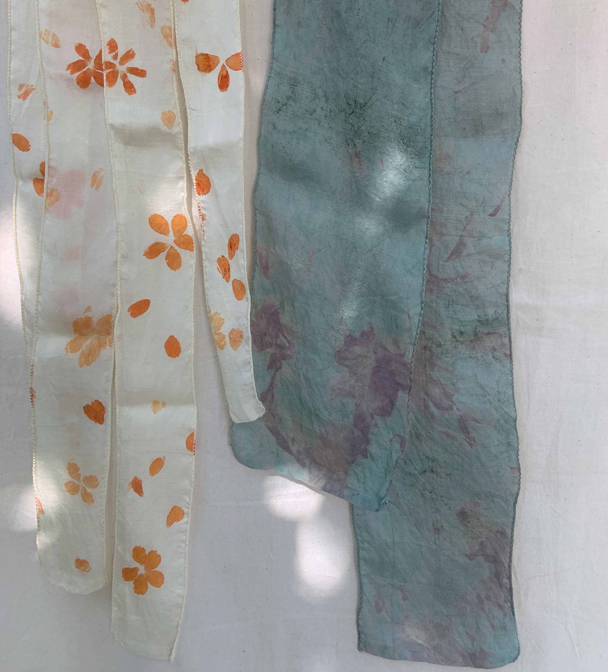 - 4 naturally dyed ribbons, 2 floral, 2 solids