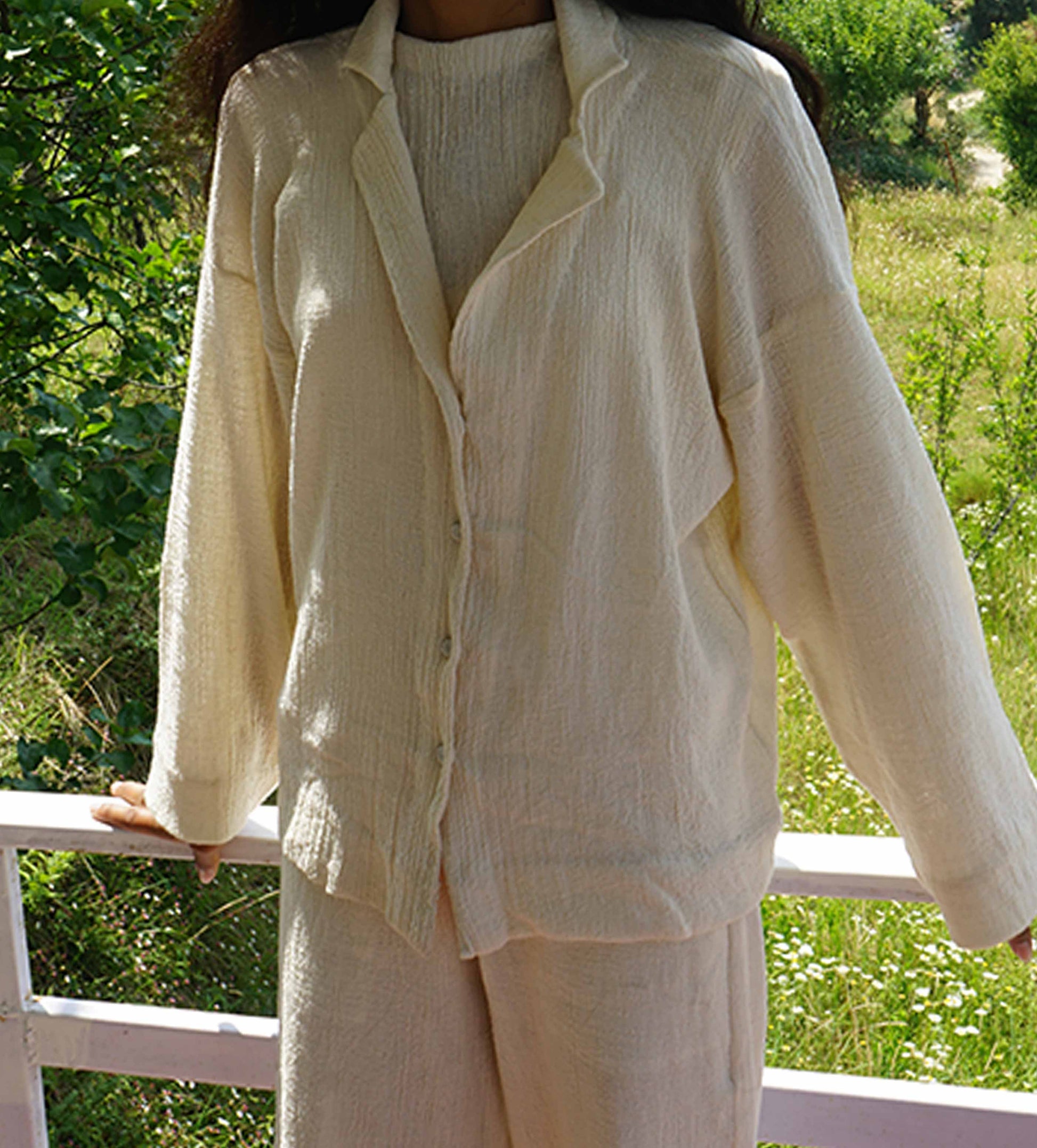 A timeless unbleached ecru shirt. Made in an oversized fit, using organic cotton.