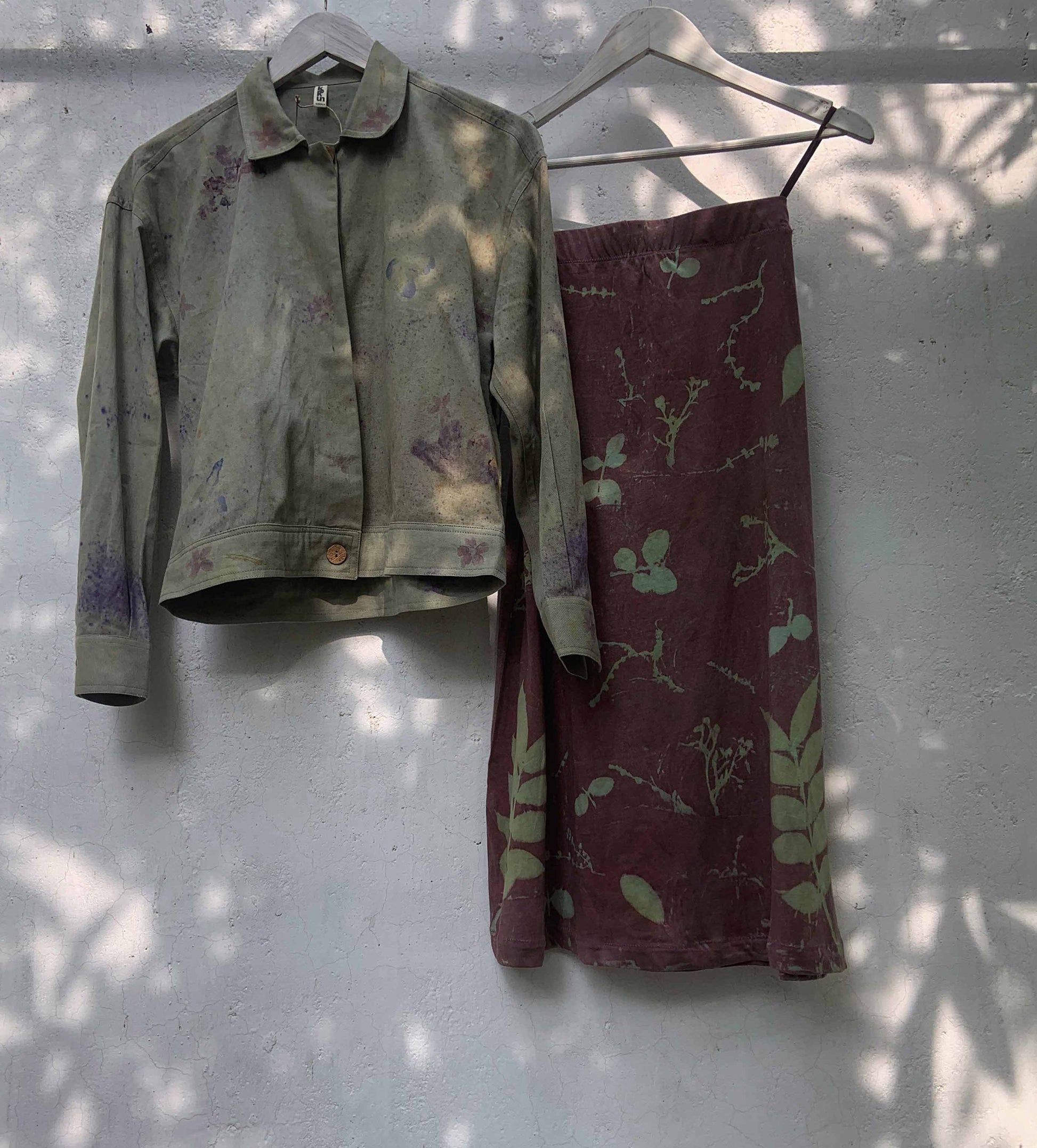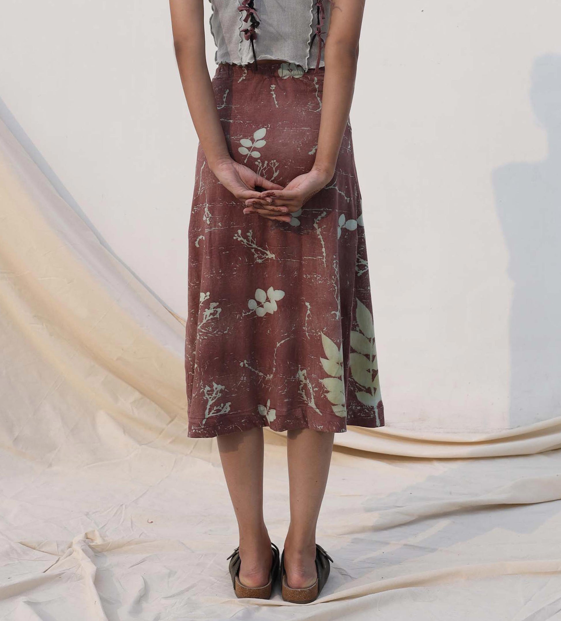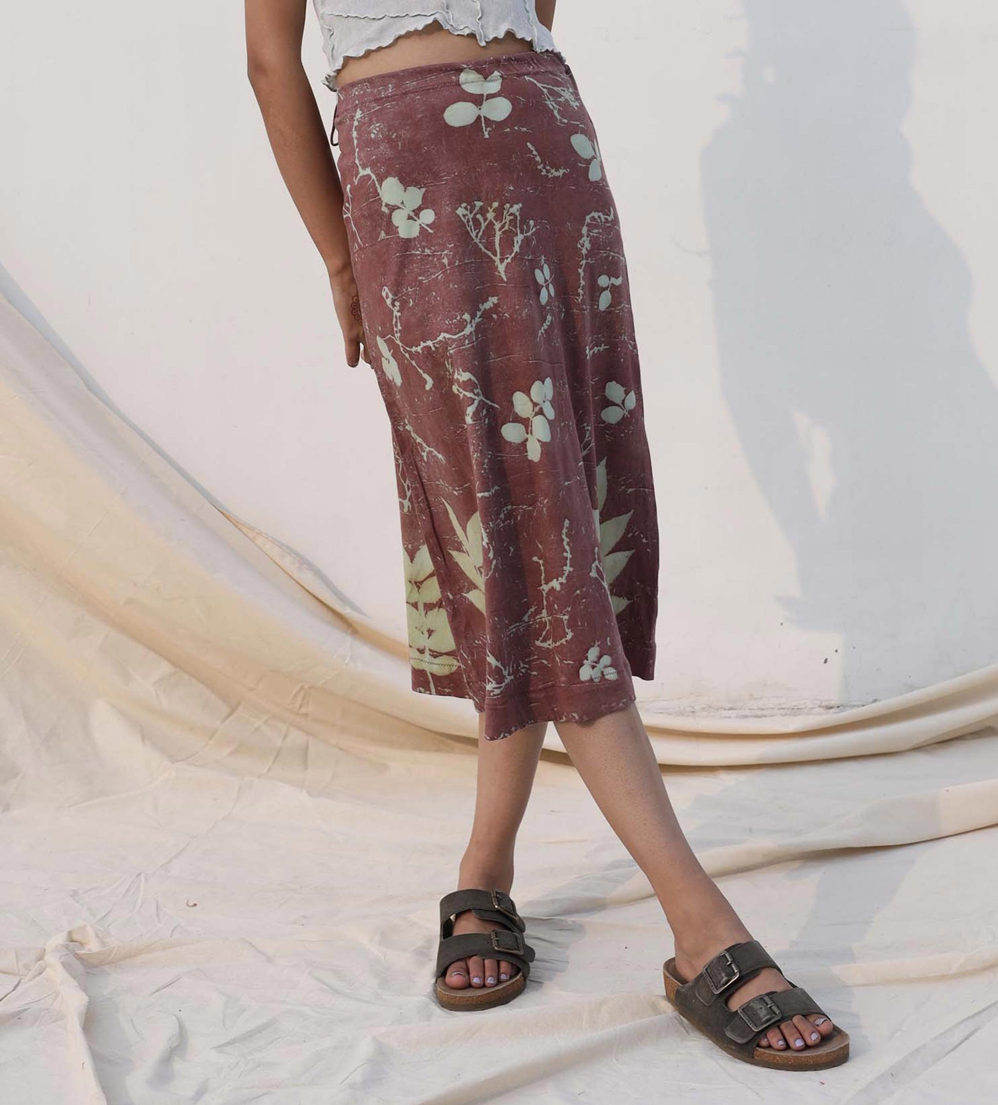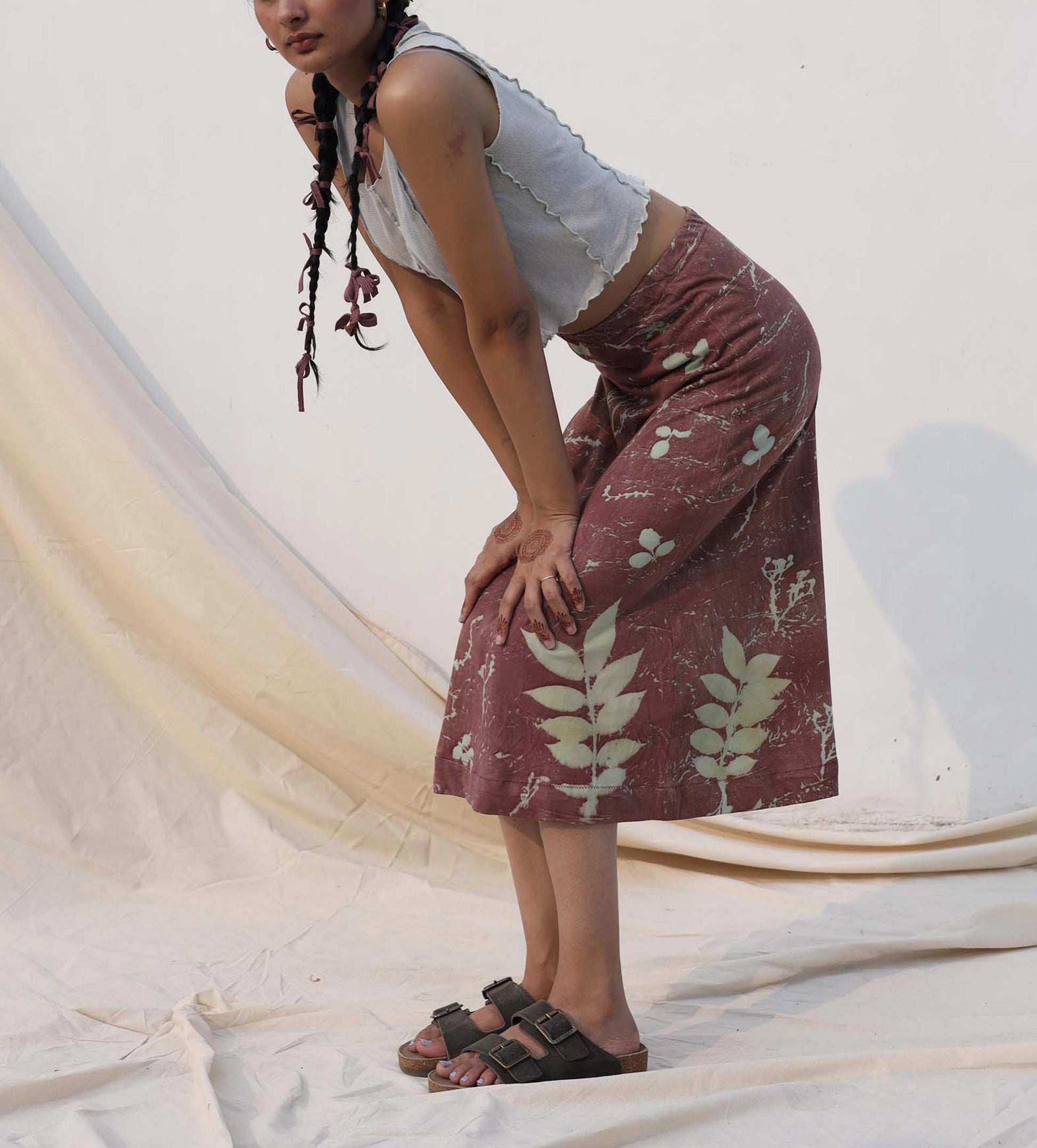 A snug and stretchy skirt, dyed using foraged finds. Its soft fabric gently hugs the body and takes shape for easy movement.