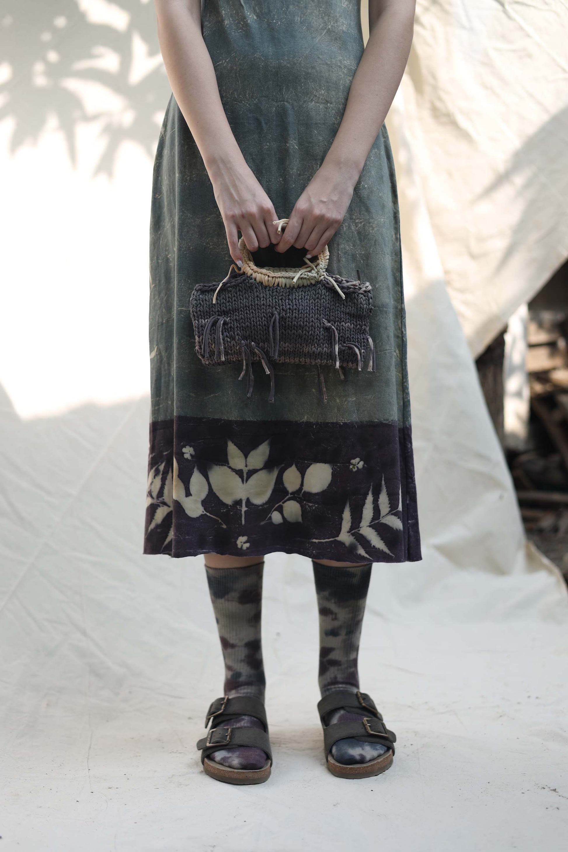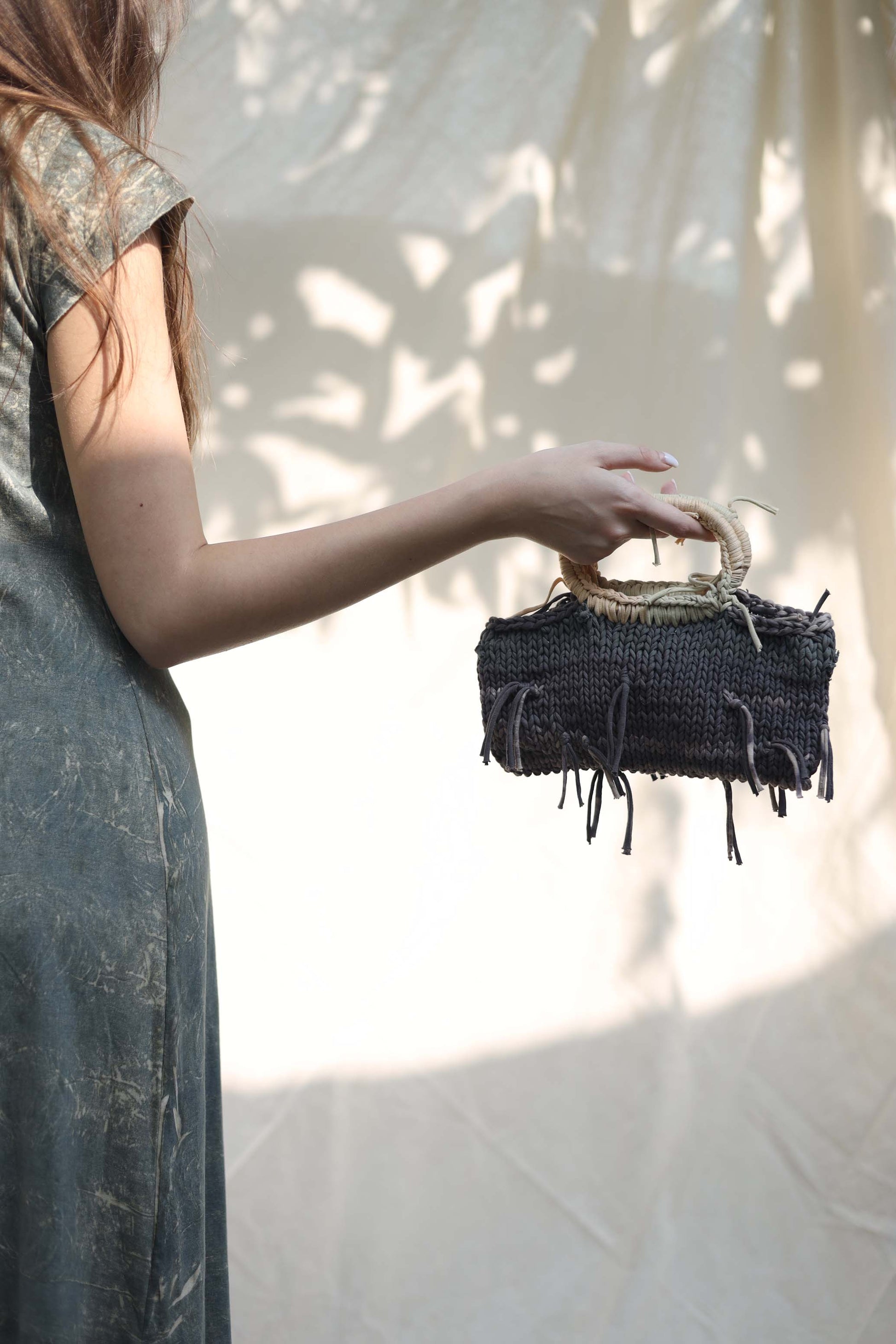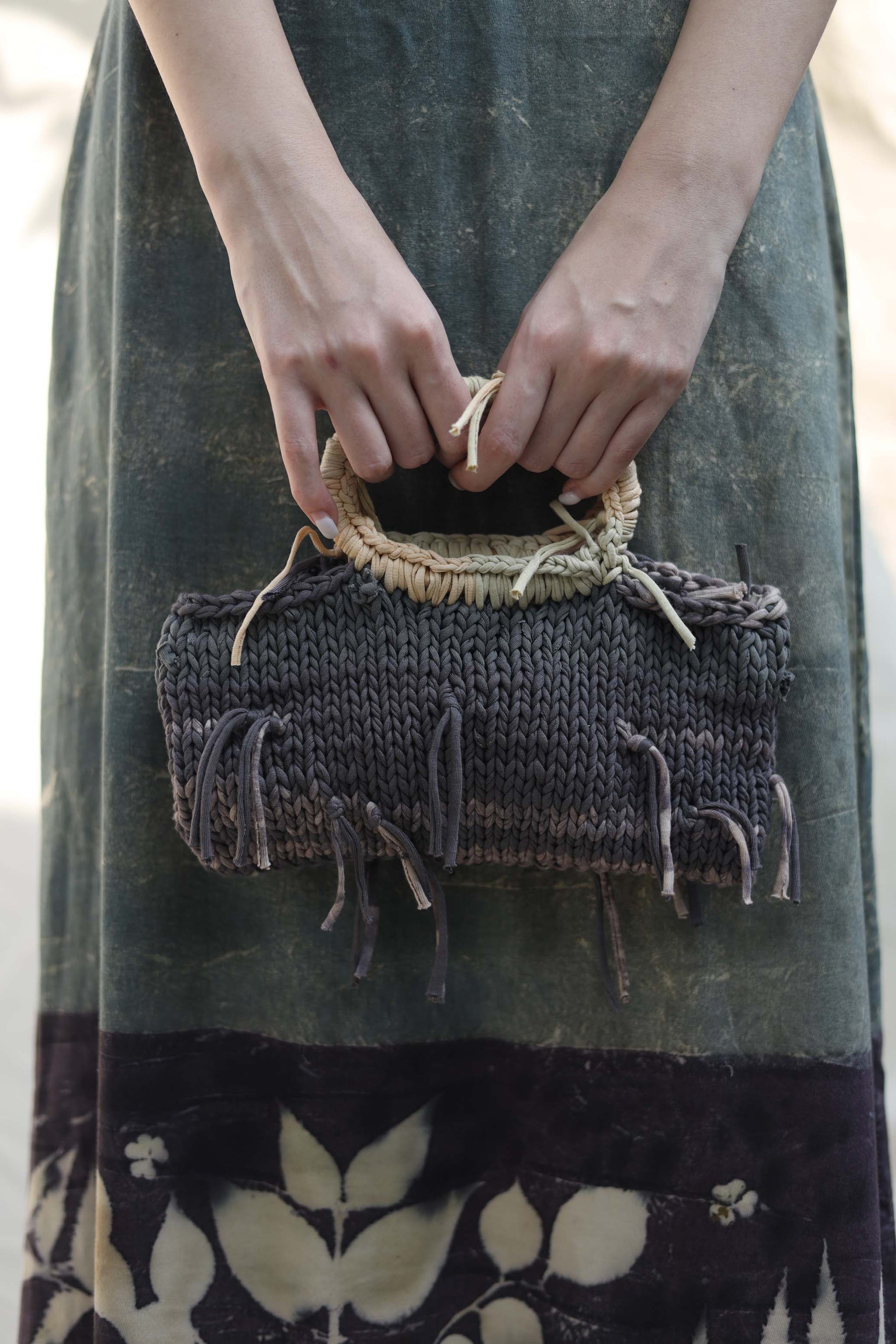This textured ‘granite’ hand-knit bag is born from rescued dead-stock textiles, transformed into yarns naturally dyed and patiently crafted with love. Each piece whispers the quiet beauty of dusk and memory, celebrating mindful making and treasured imperfection.