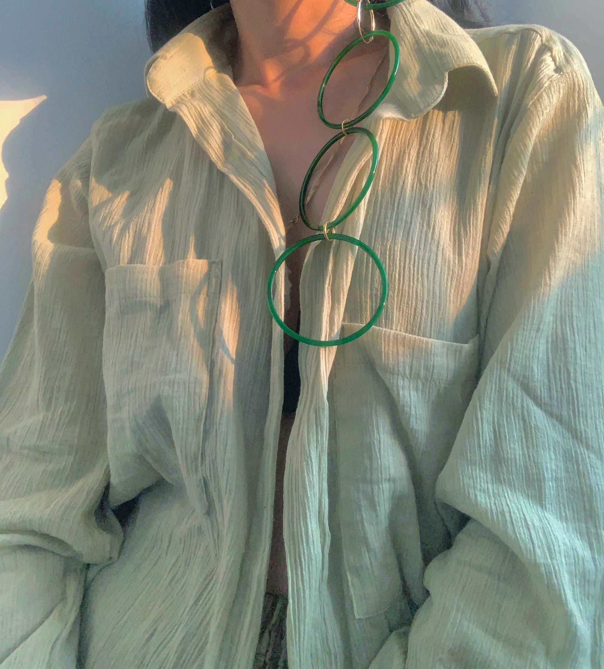 *colour of the shirt might vary according to the hibiscus flowers used. Flowers of the same variety from a different garden, during different seasons, show varied shades of green.
