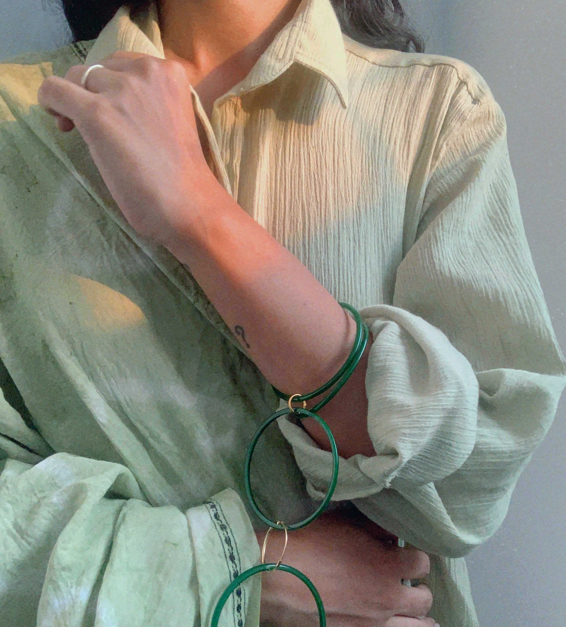 - Hand wash with pH neutral or mild soap separately (the first few washes will bleed but with every wash, the true beauty and shades of green blossom on the shirt)