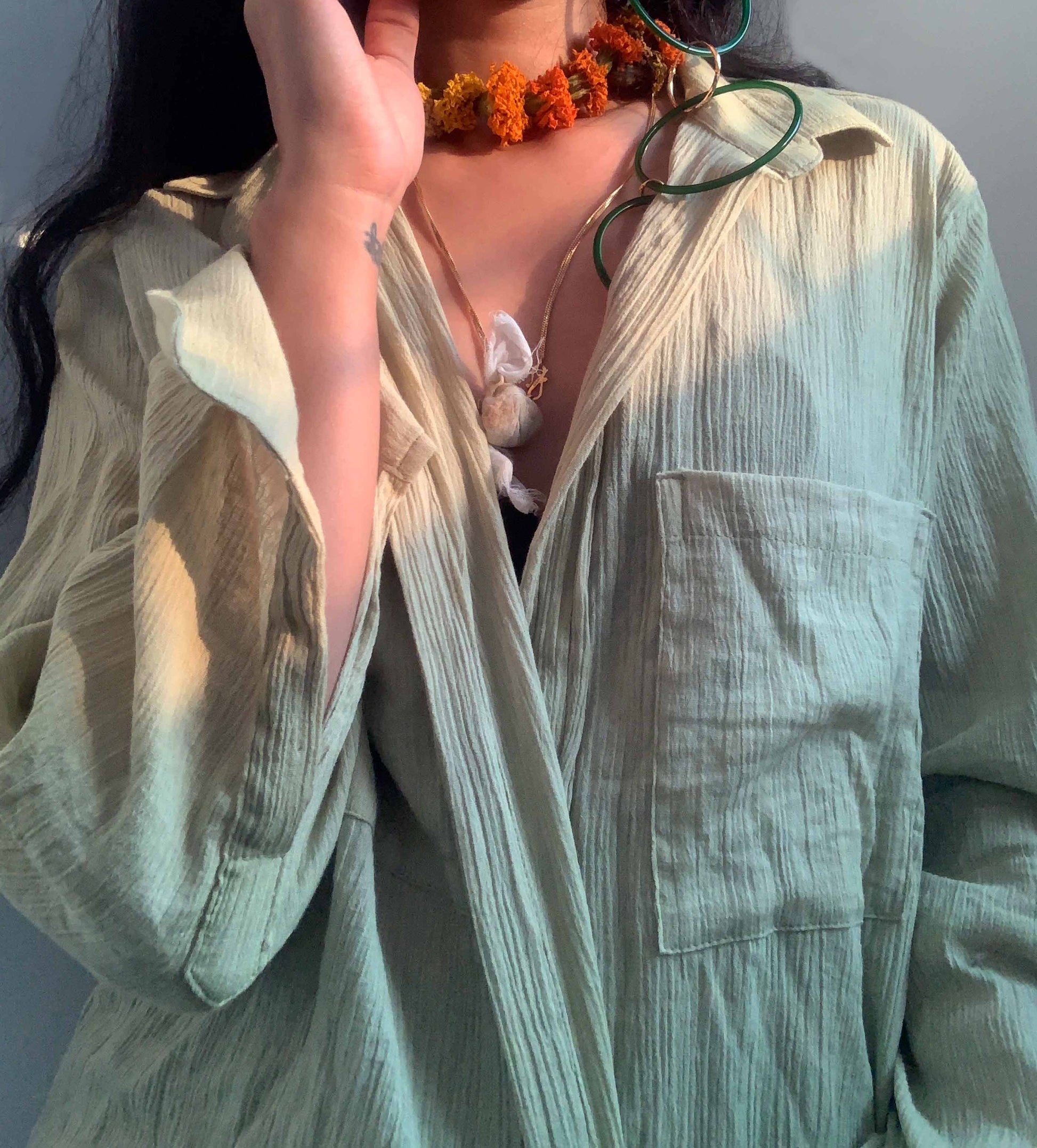 A comfy unisex shirt, dyed by the local women in village Raghurampur, using hibiscus flower extract.