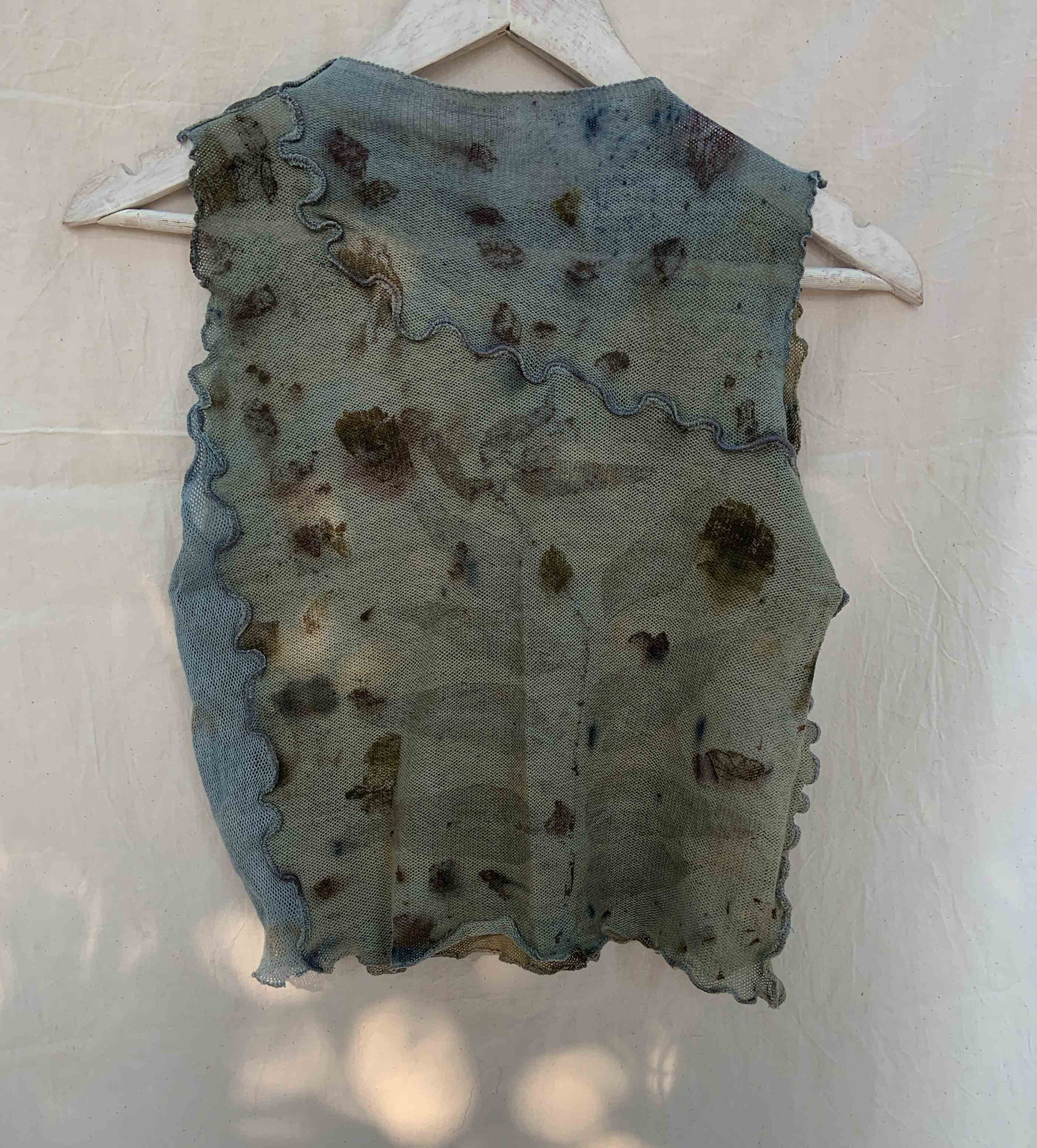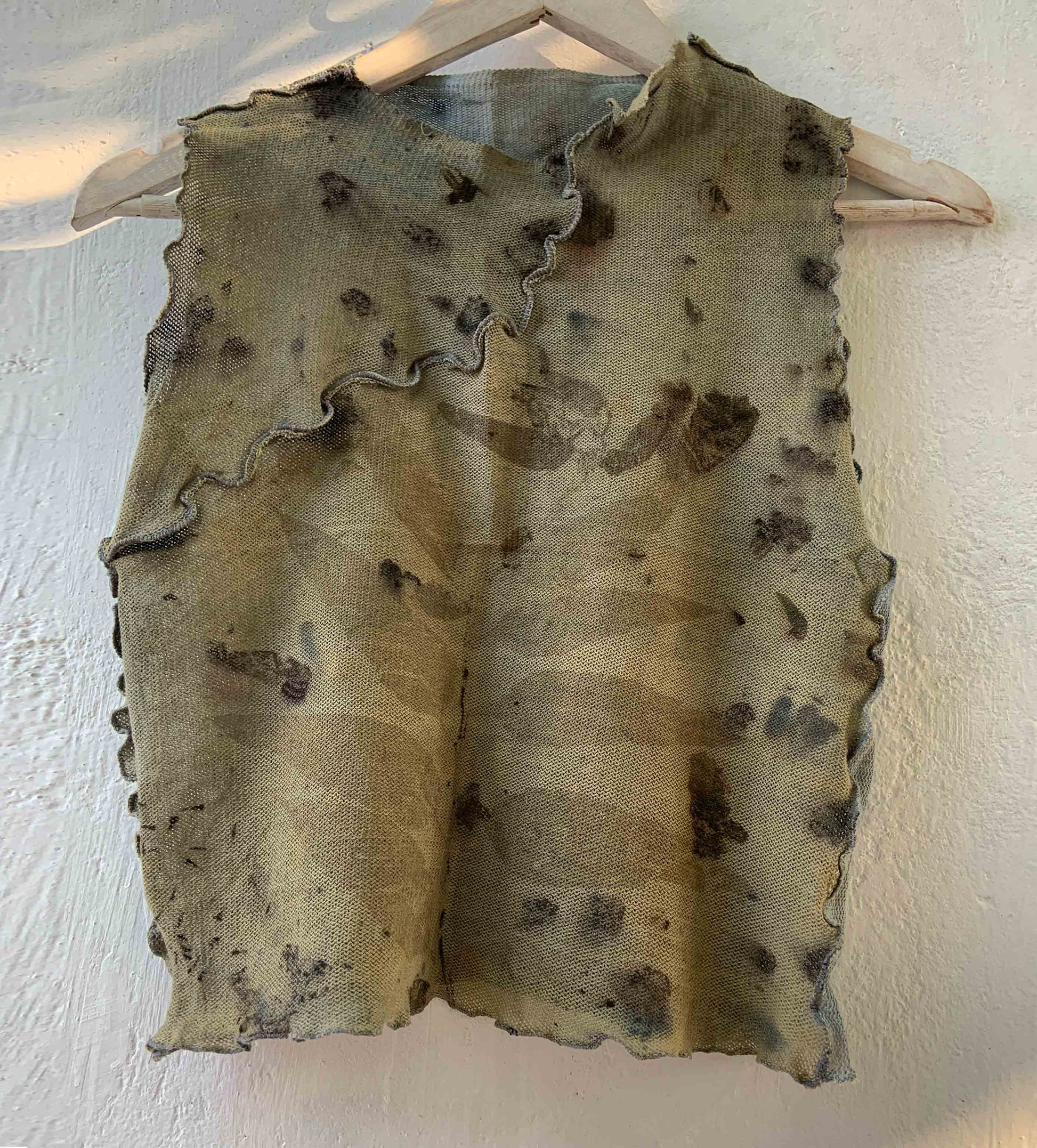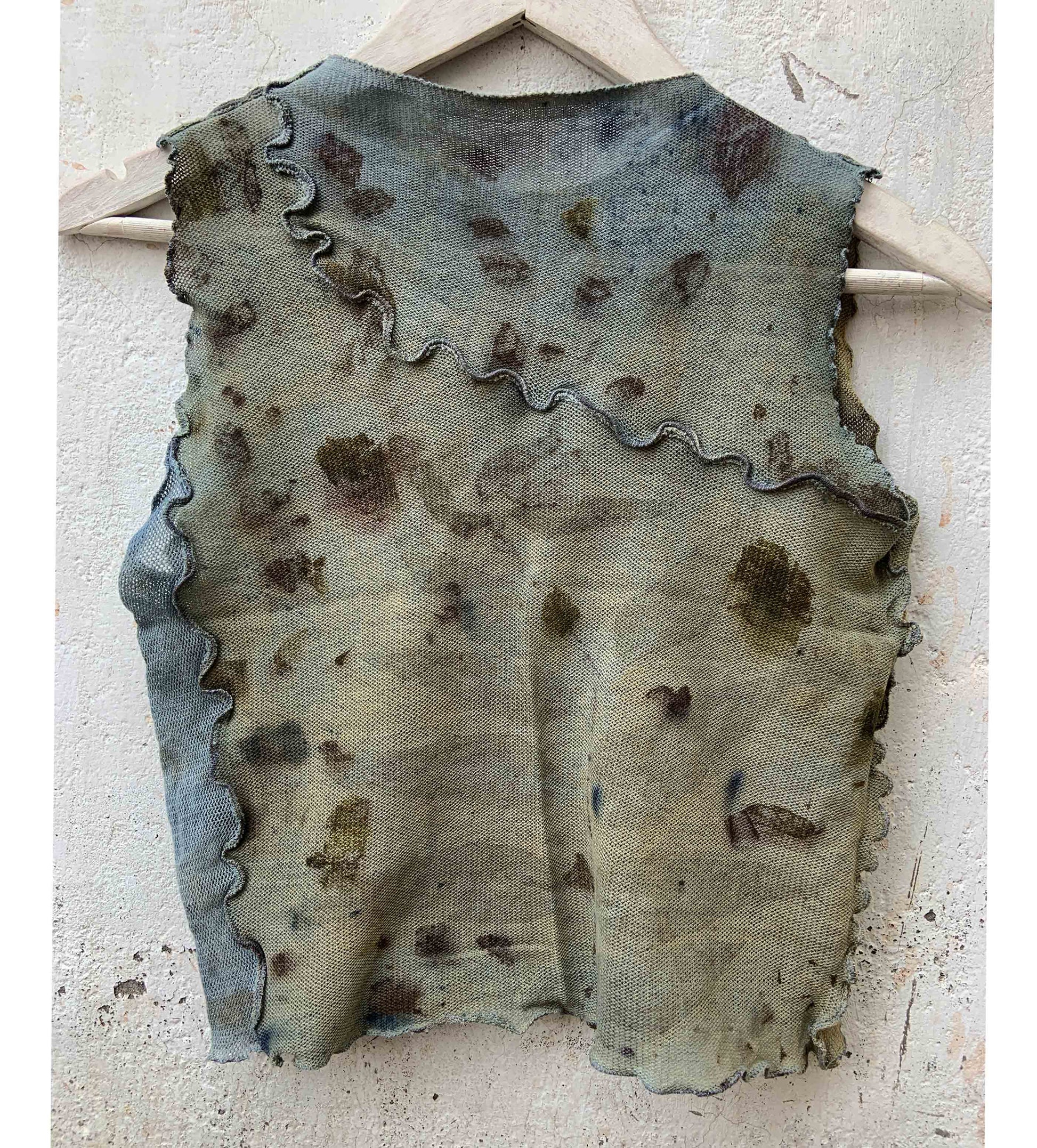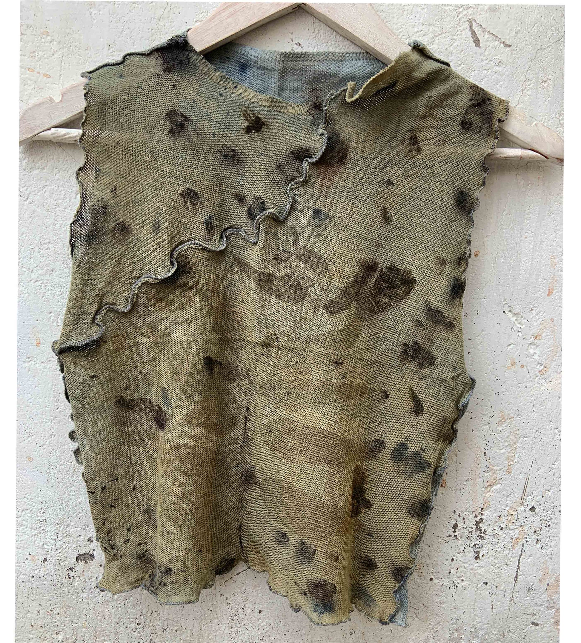 A true rendition of wabi-sabi; one-of-a-kind, handmade top, stained with nature's foraged finds.