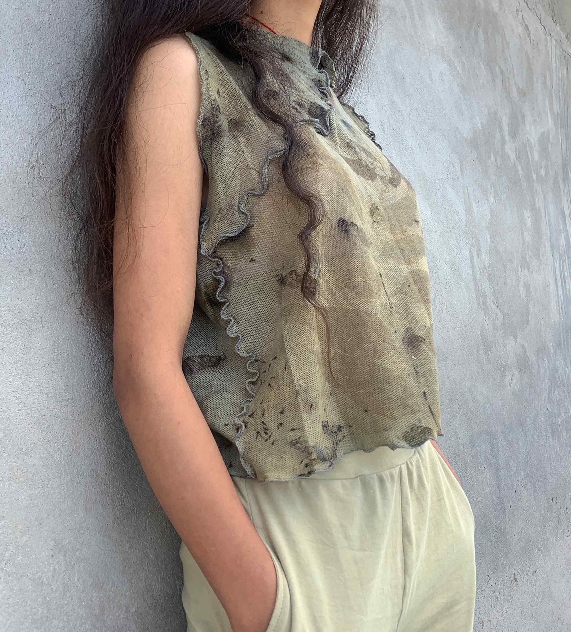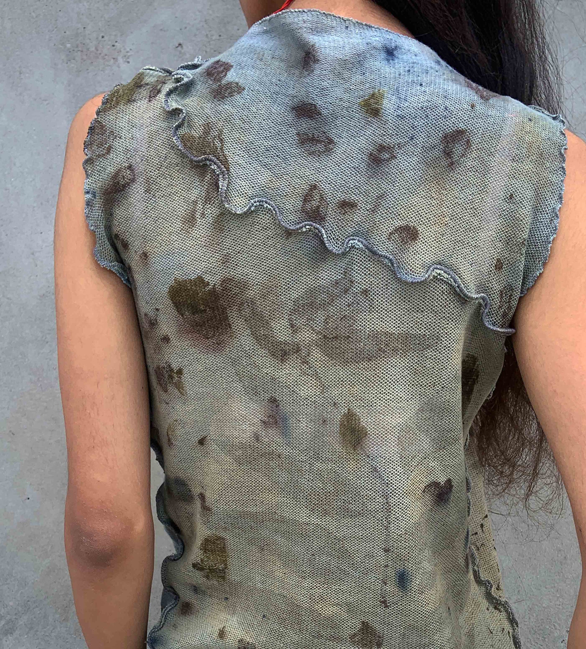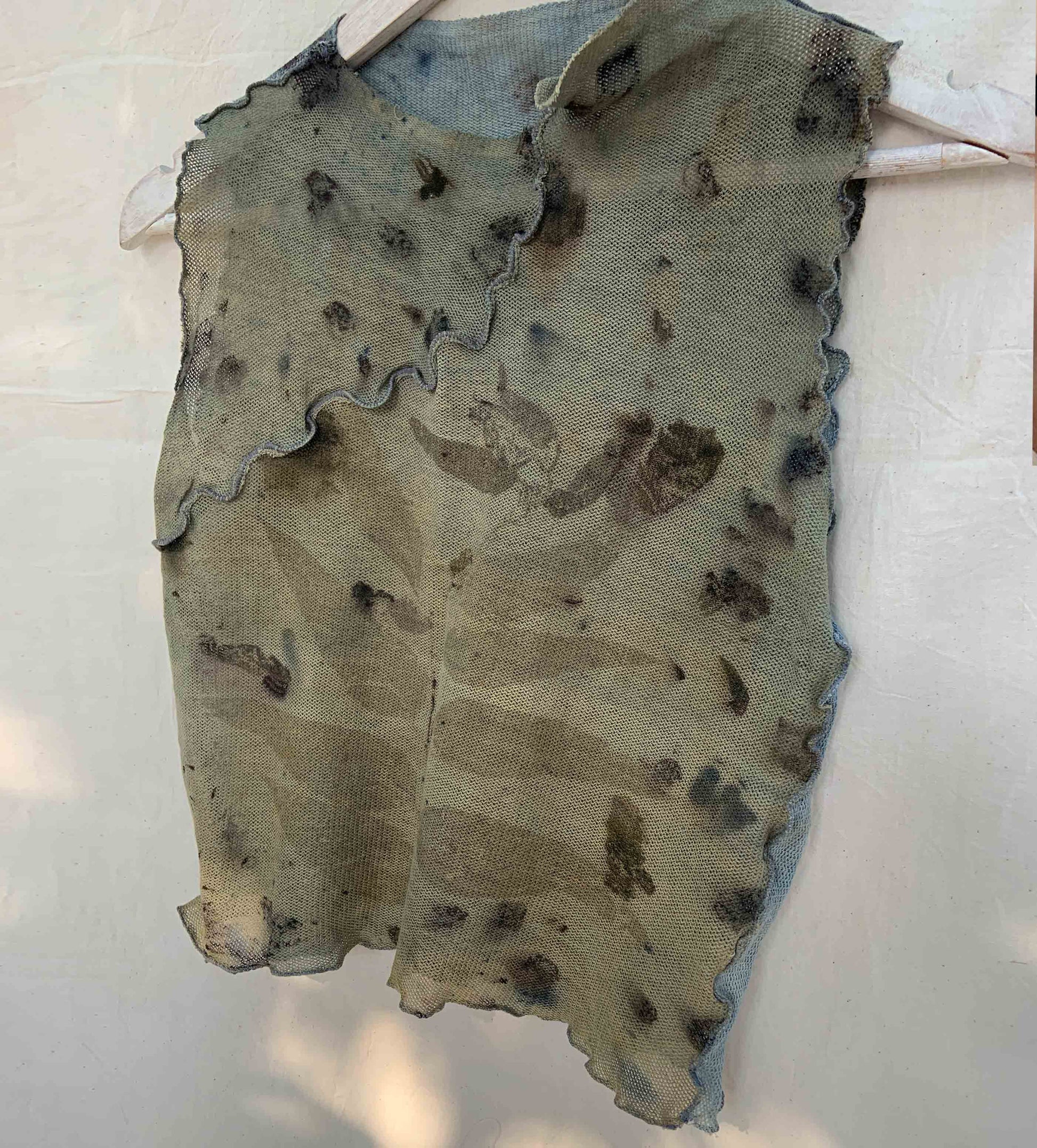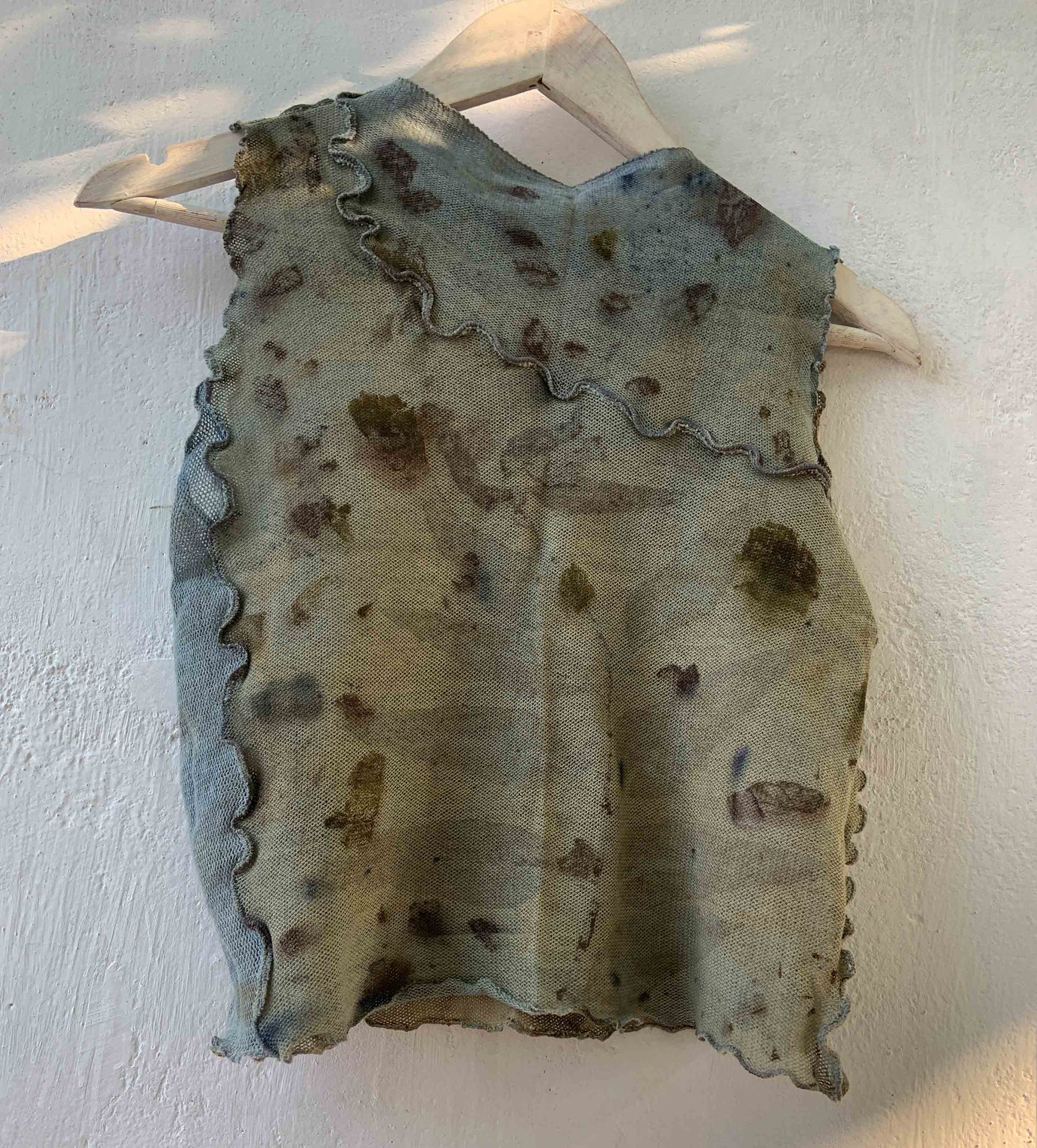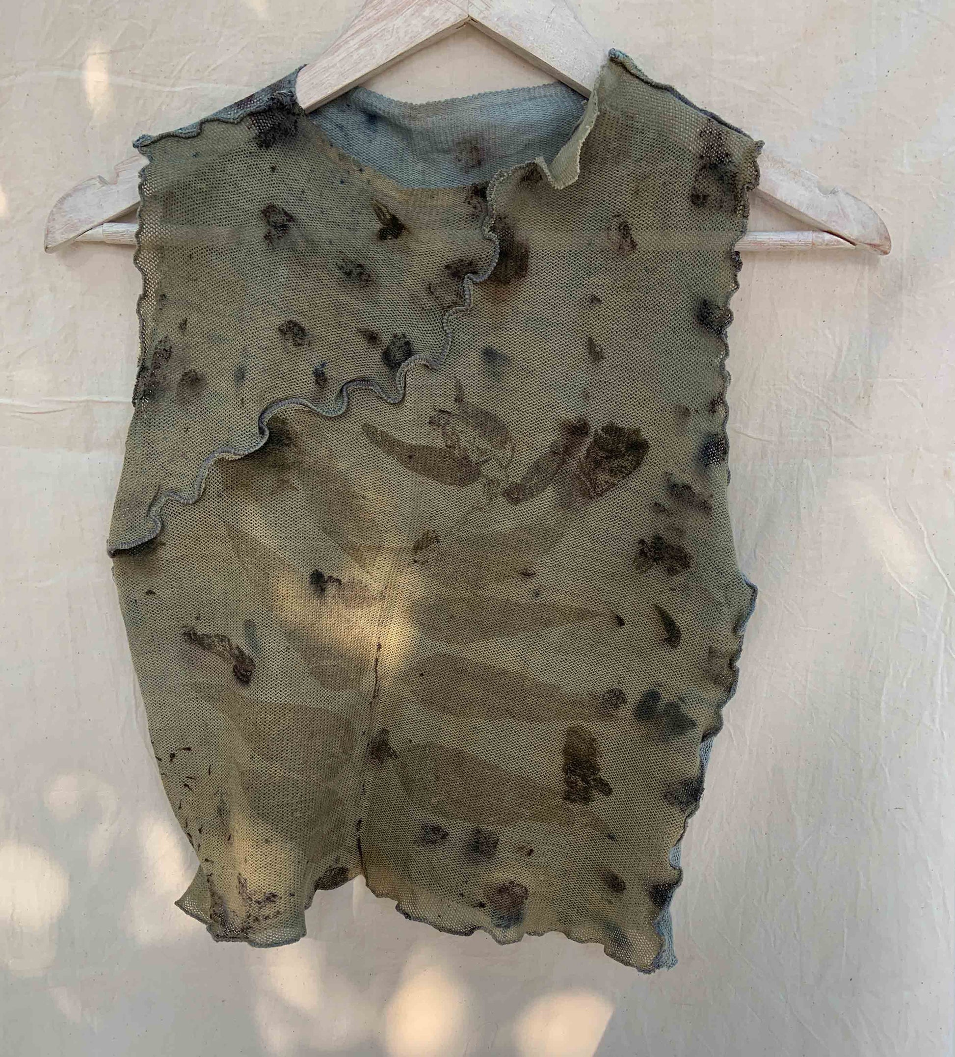 A true rendition of wabi-sabi; one-of-a-kind, handmade top, stained with nature's foraged finds.