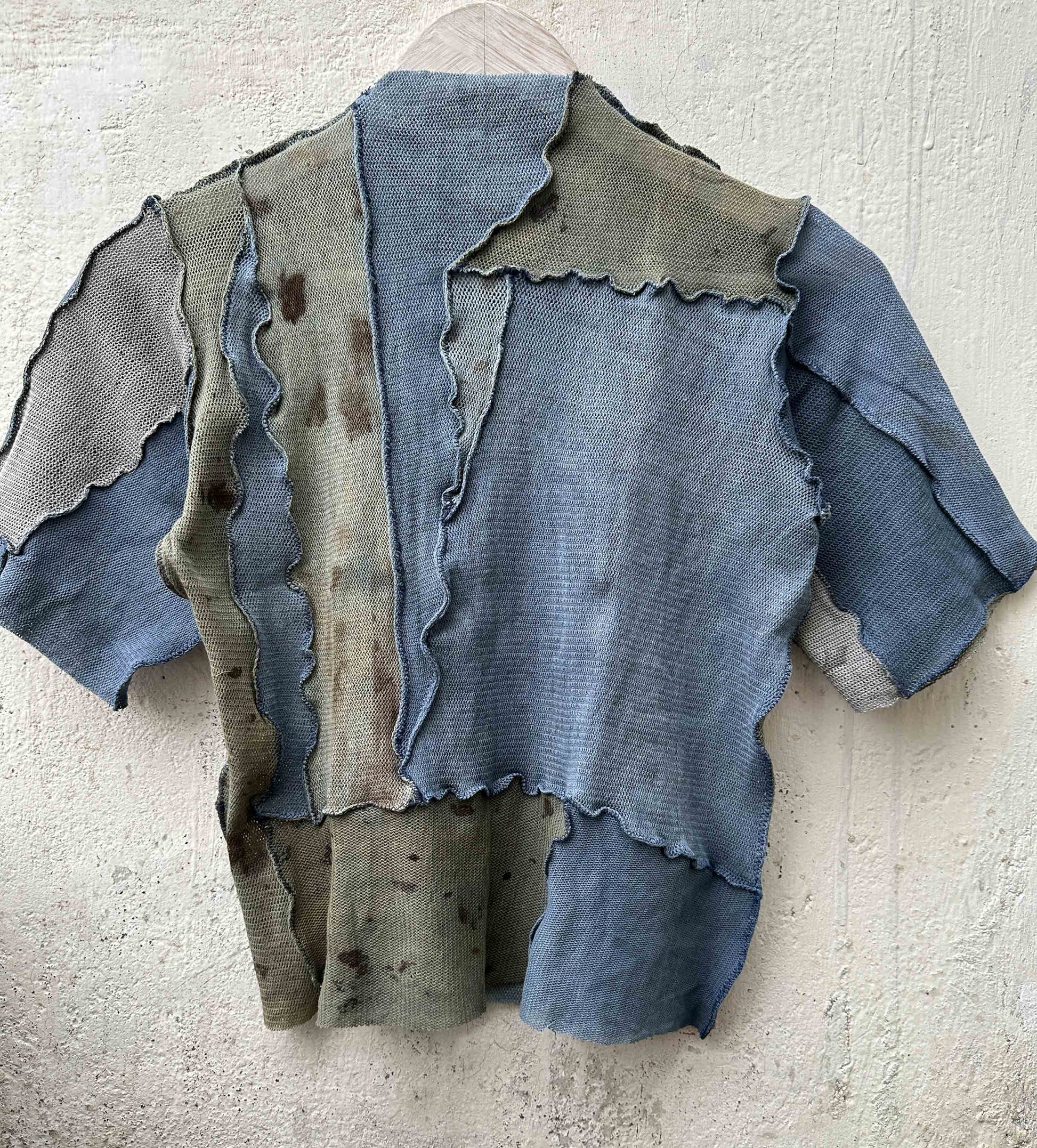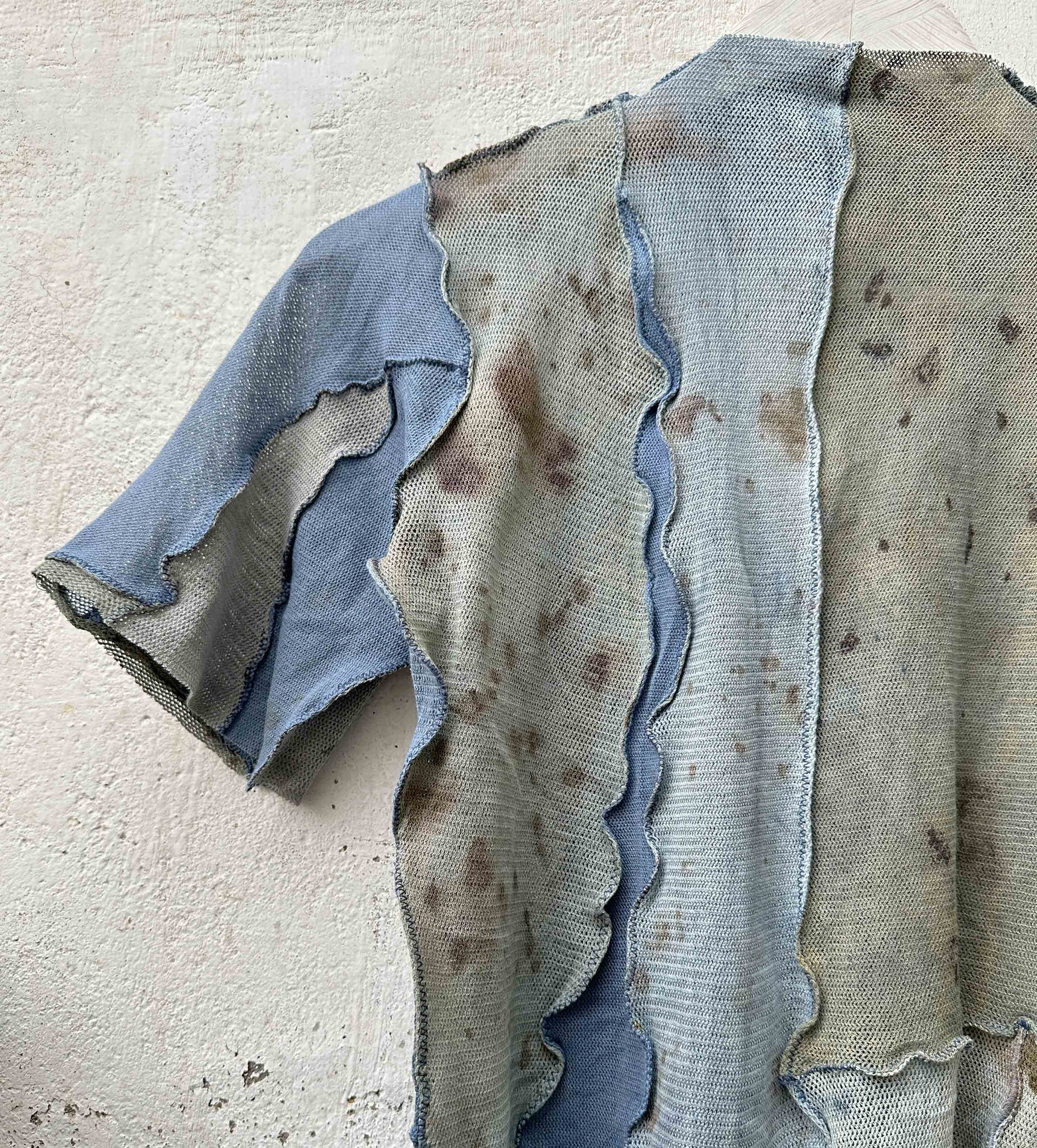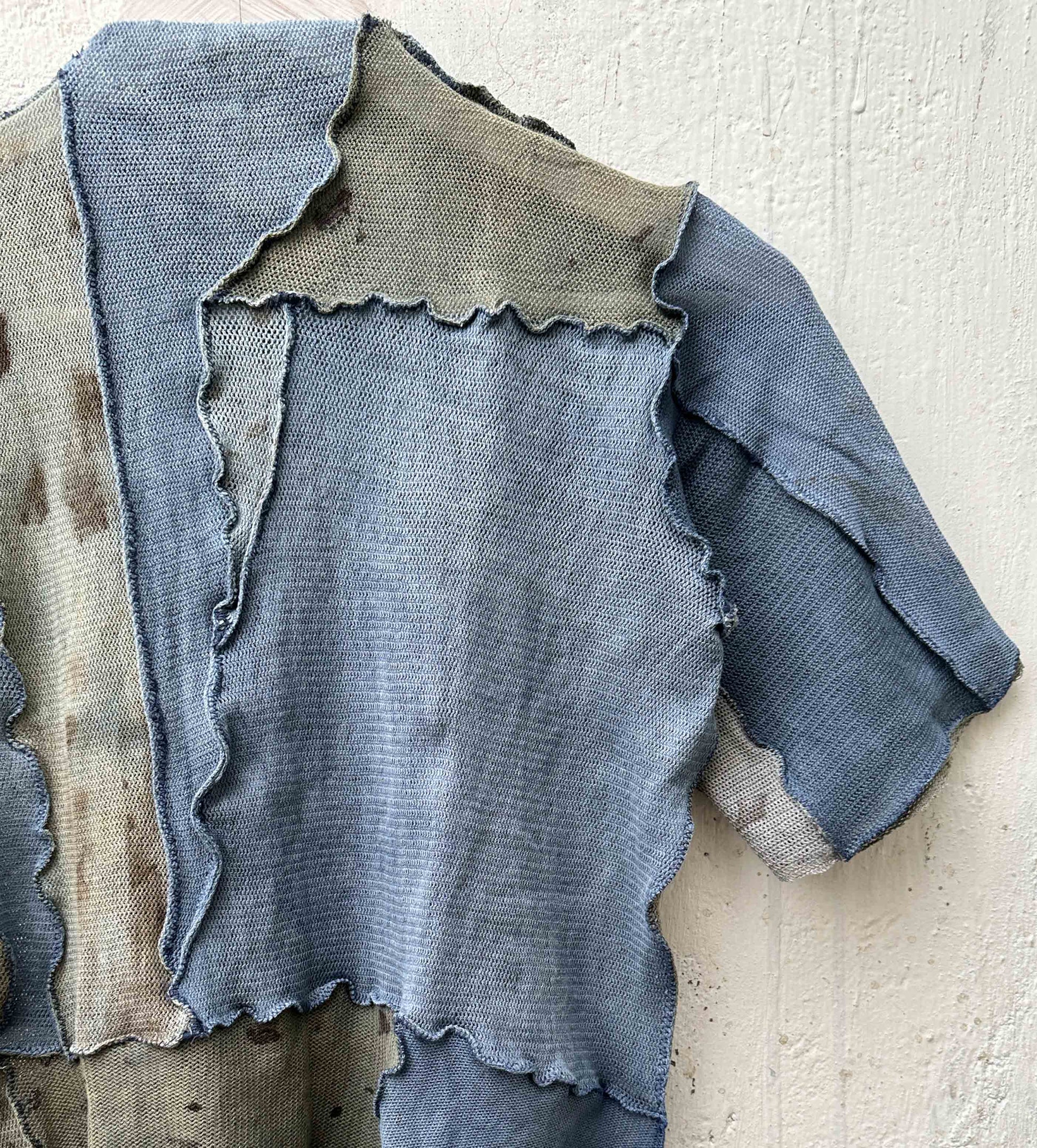 A rendition of wabi-sabi, stained with natural indigo and nature's foraged finds.