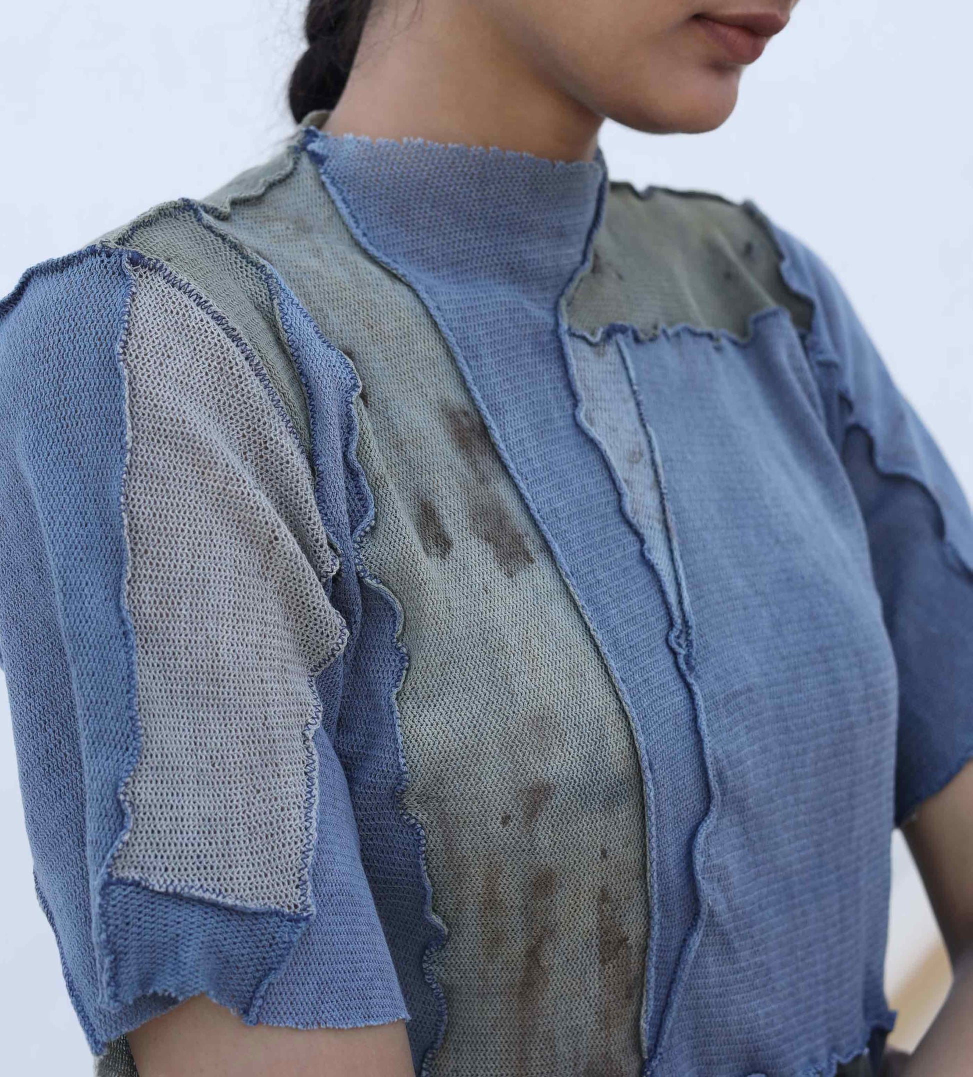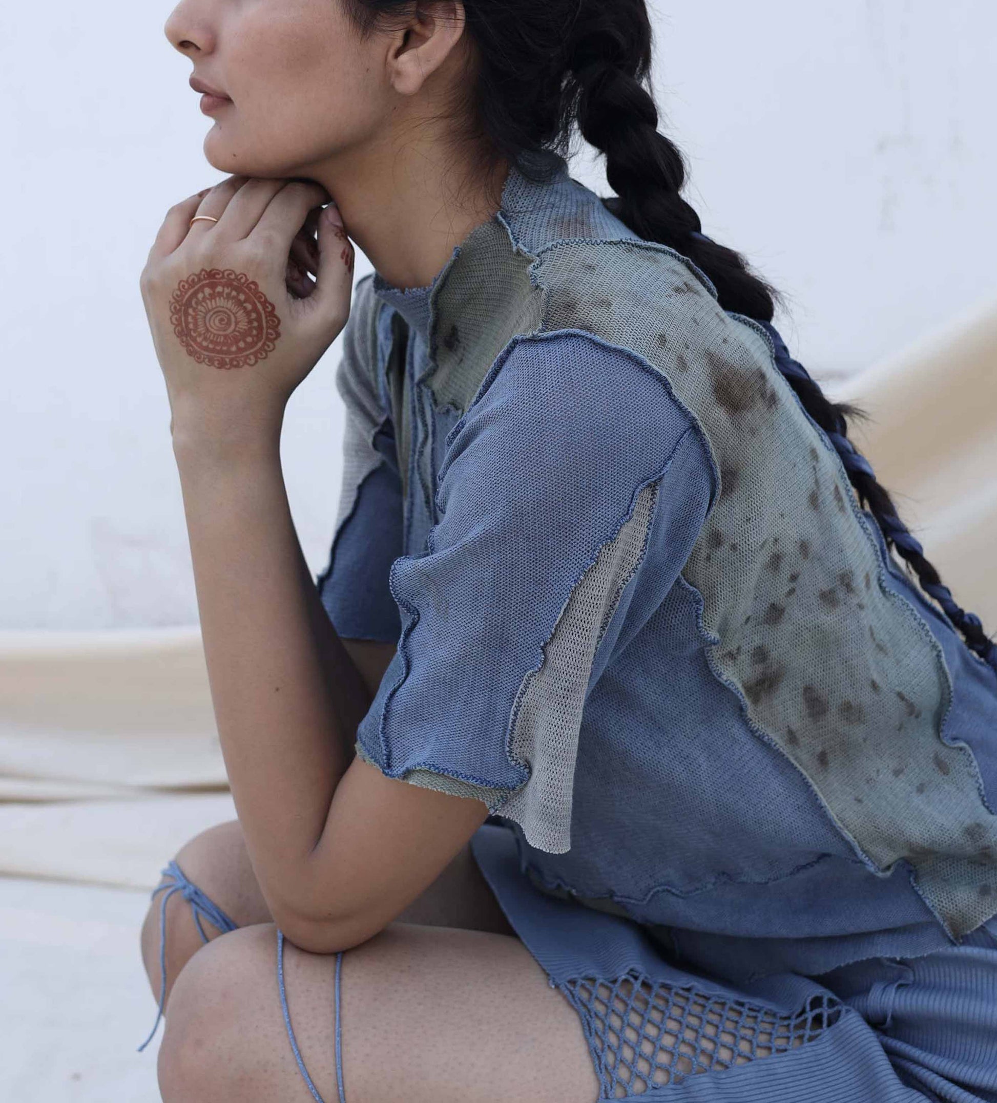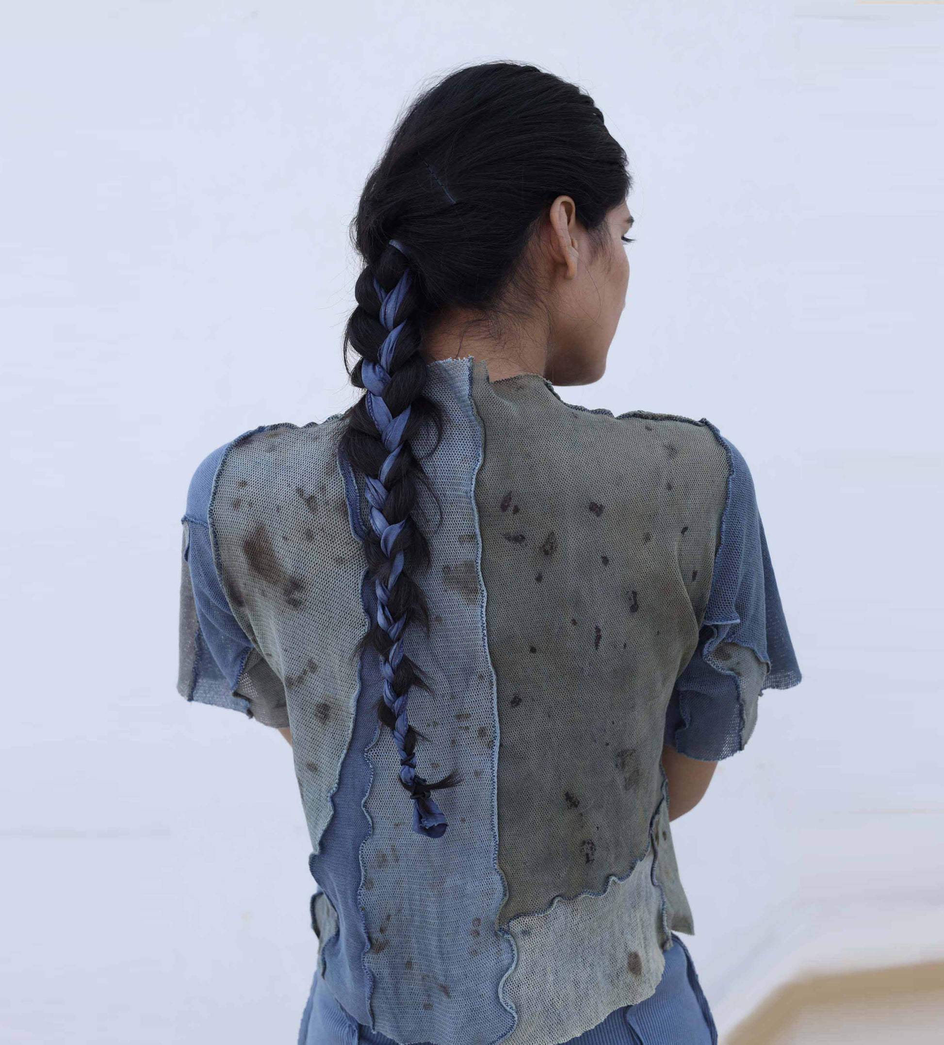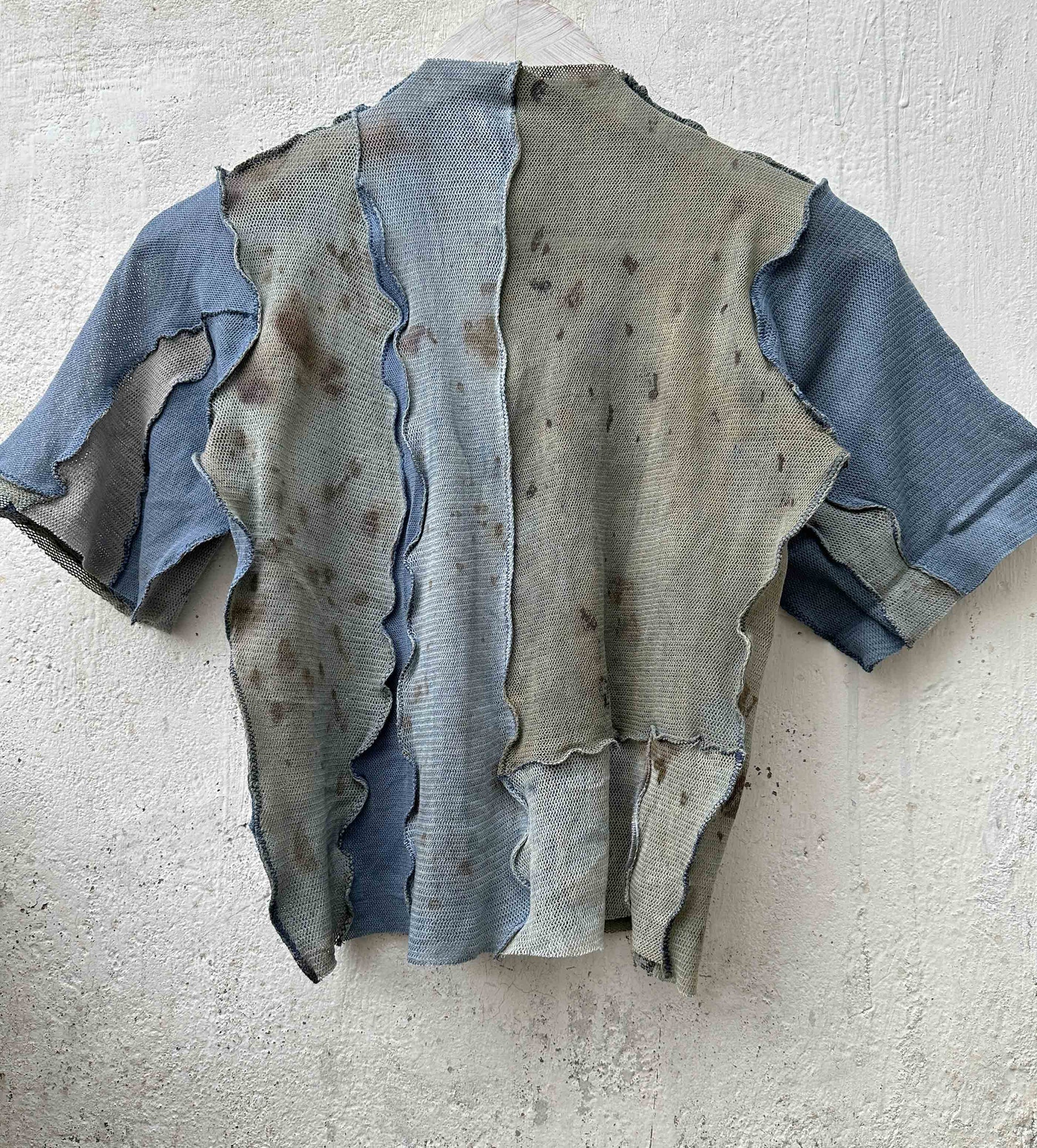 A rendition of wabi-sabi, stained with natural indigo and nature's foraged finds.