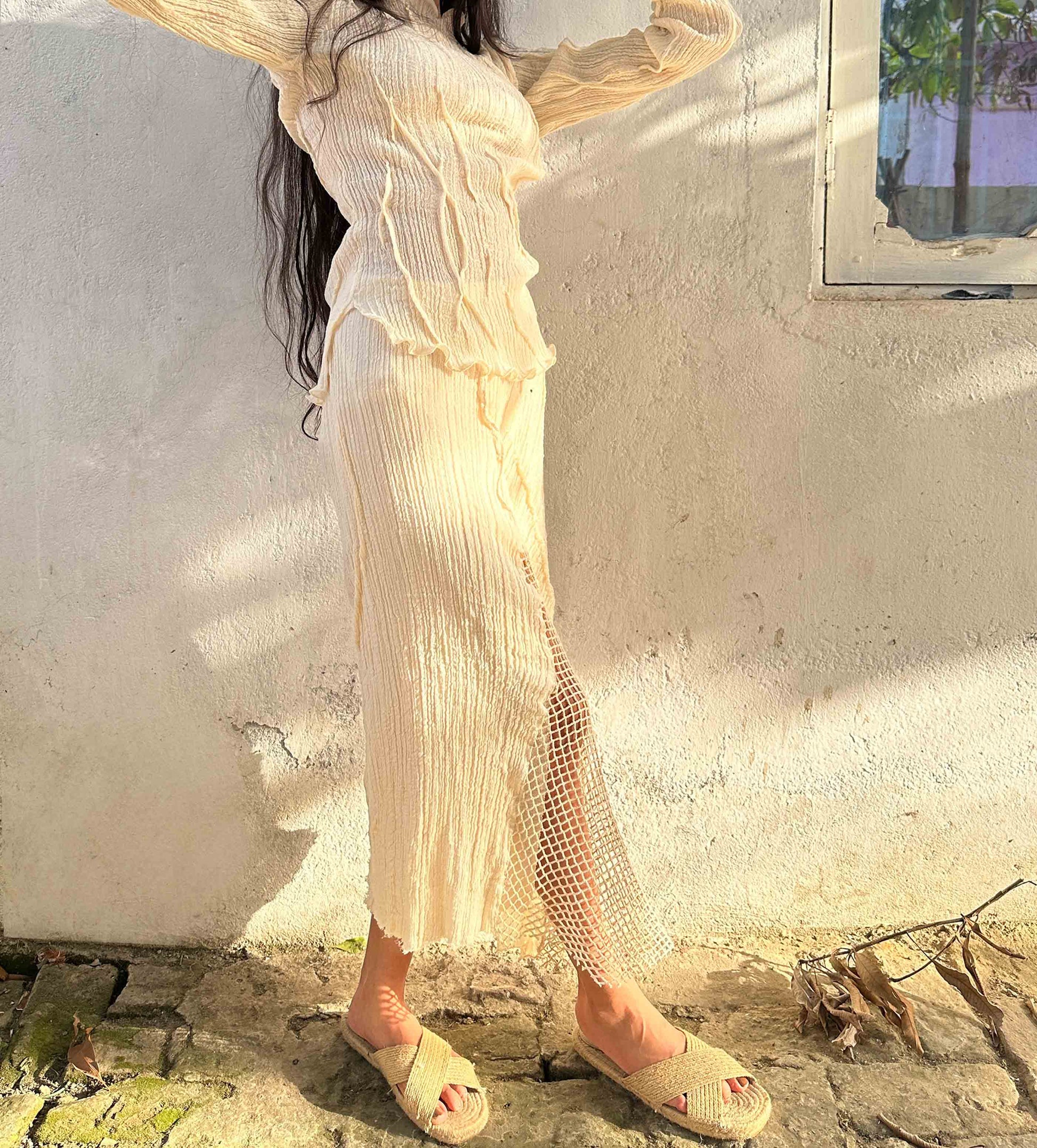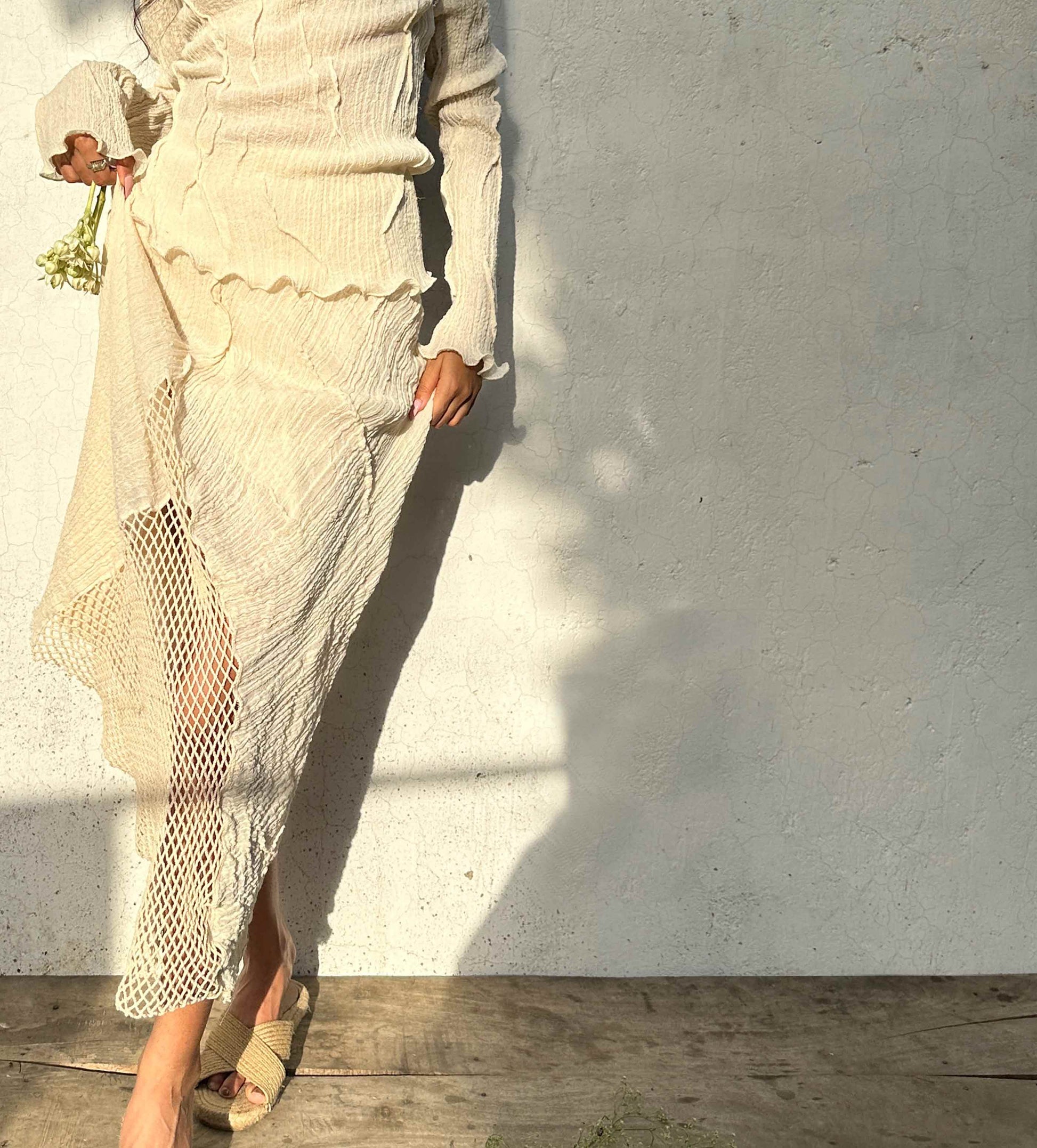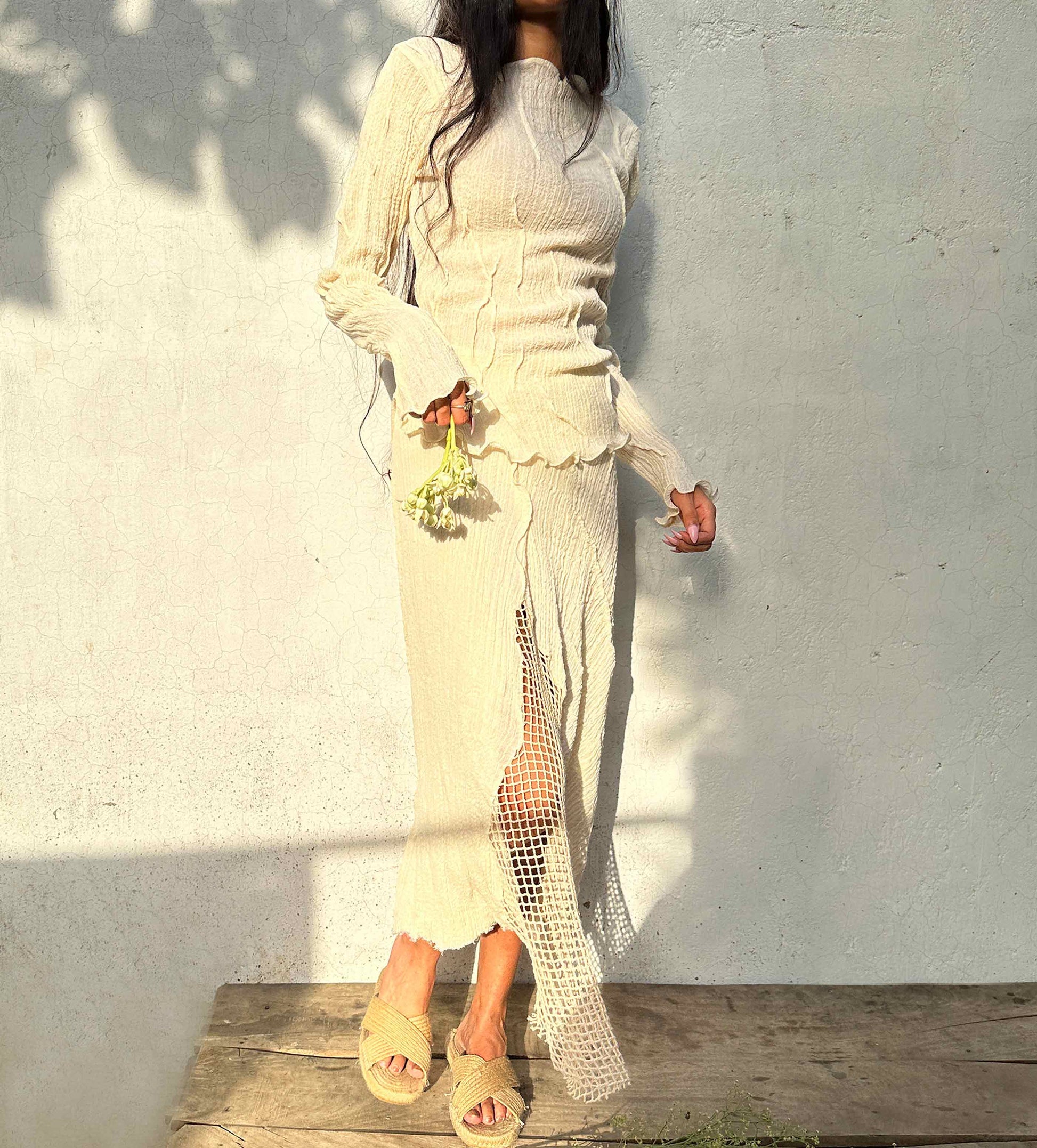 Handmade textures on our most loved riptide and Leia skirt, along with Jamun overlay top, to brighten a dull moment. The whole look is made in 100% soft cotton, which gently hugs the body and takes shape for easy movement.