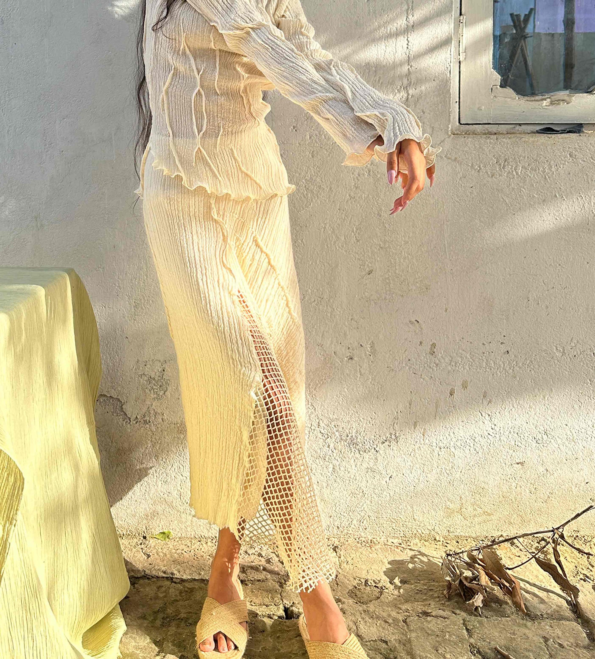-Made in unbleached cotton (stretchable + with sheer details)