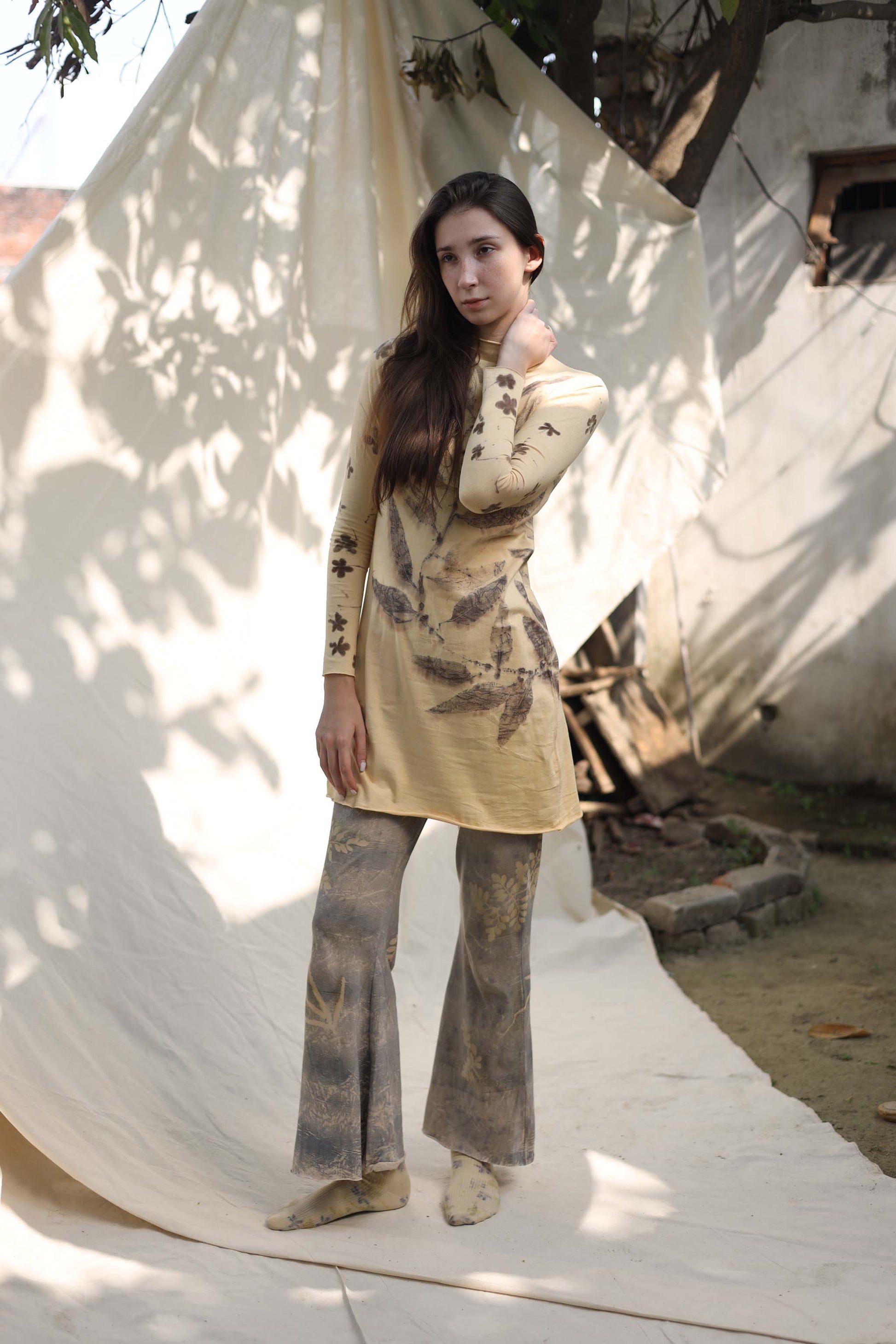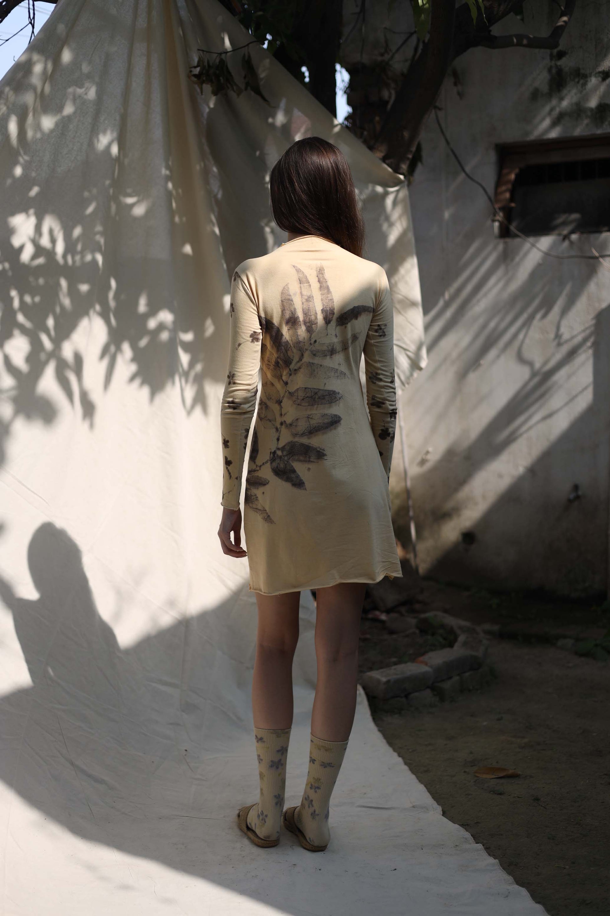 A snug dress with a combined beauty of Eucalyptus and native Malati flower imprints. Stretchable with pockets on the side, for added ease and movement.