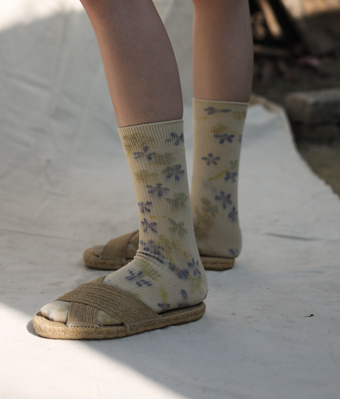 Hand-dyed by rural women, using homegrown flowers from our garden