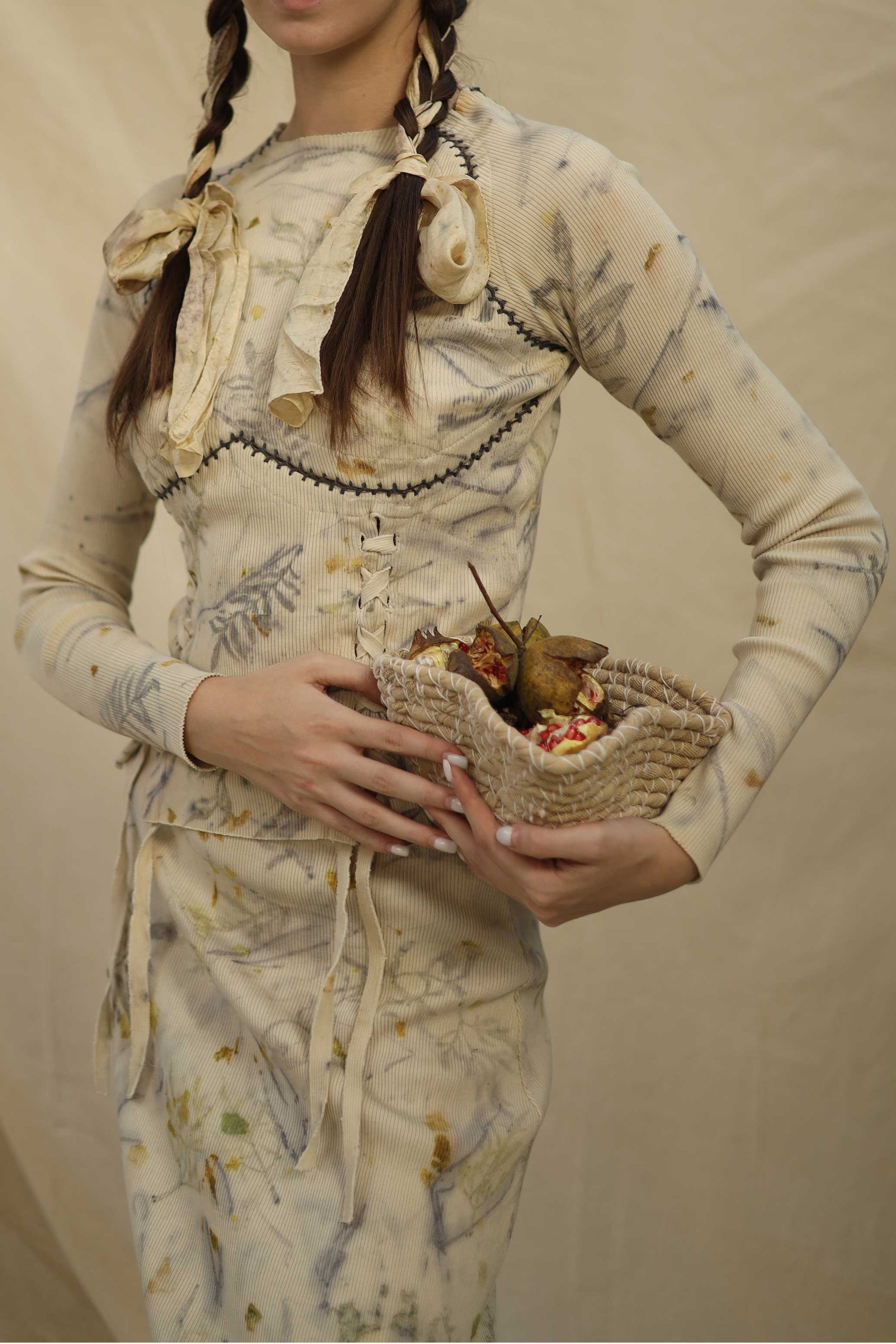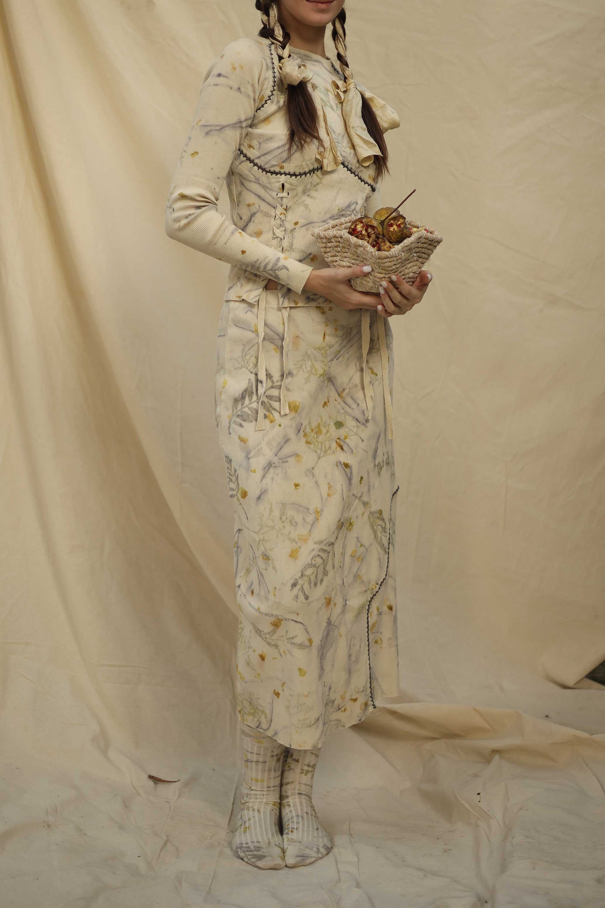 'Vana' is a story told in the echoes of foraged leaves, where every stem is hand chosen and placed, with hours unfolding as many hands tend to a single print.