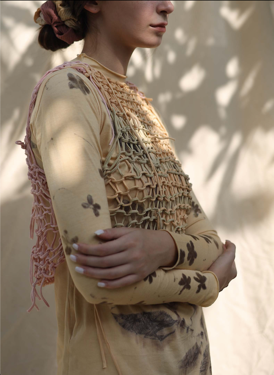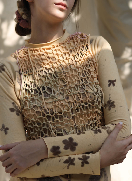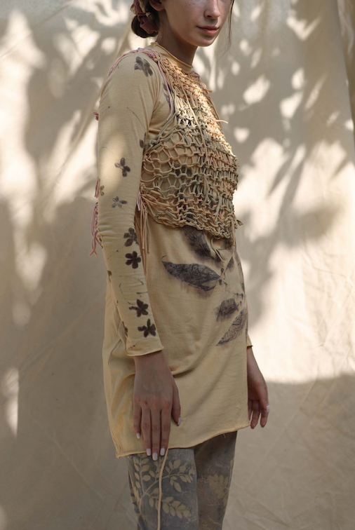 A one-of-a-kind singlet, which can be layered over or under. It is hand-knitted by upcycling textile surplus, which is shredded by hand and then naturally colored to make unique kokūn yarns. These yarns are handknitted by rural women of Awadh, to create beautiful somethings.
