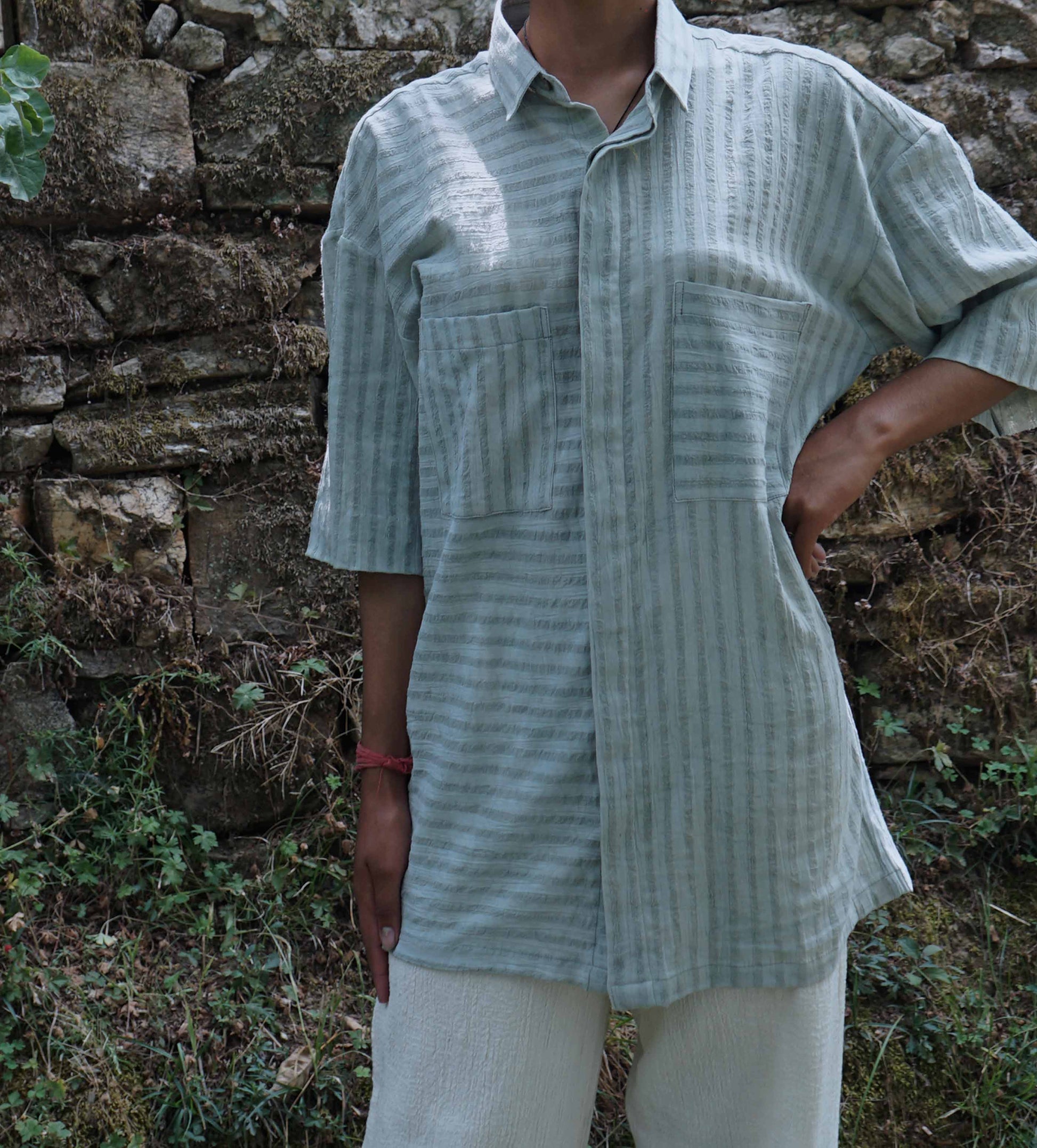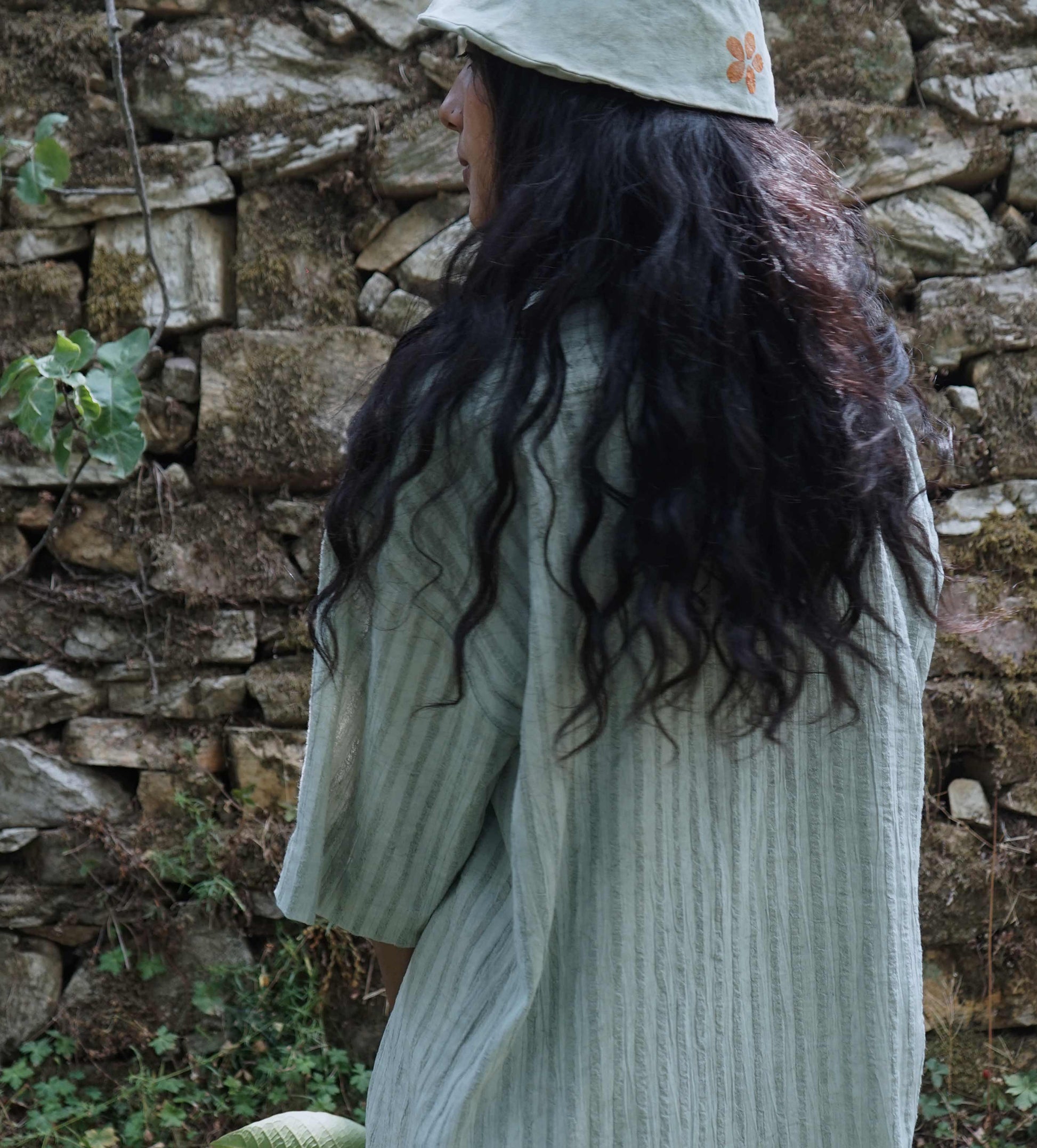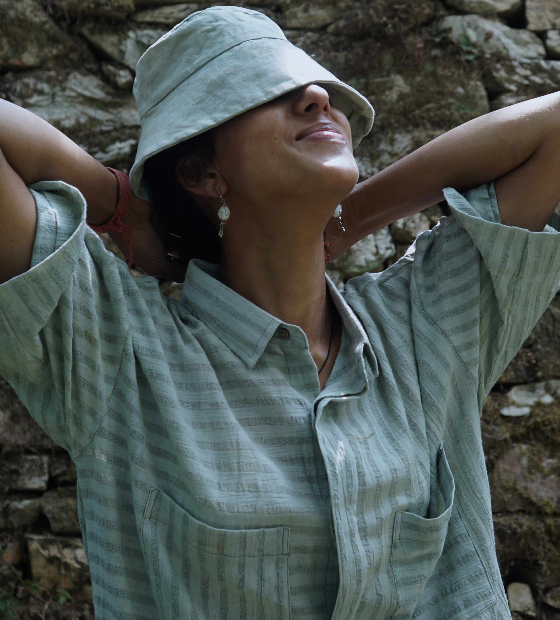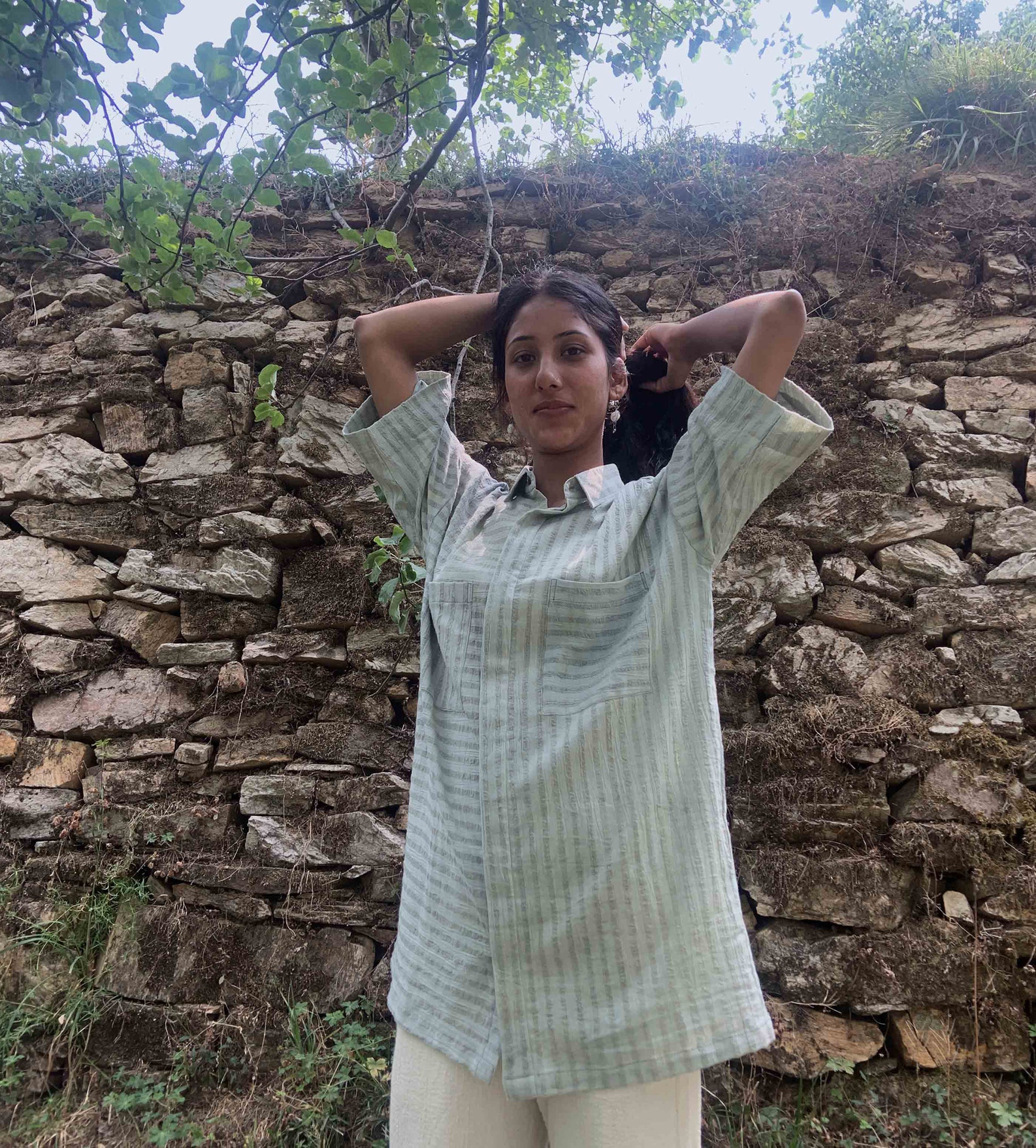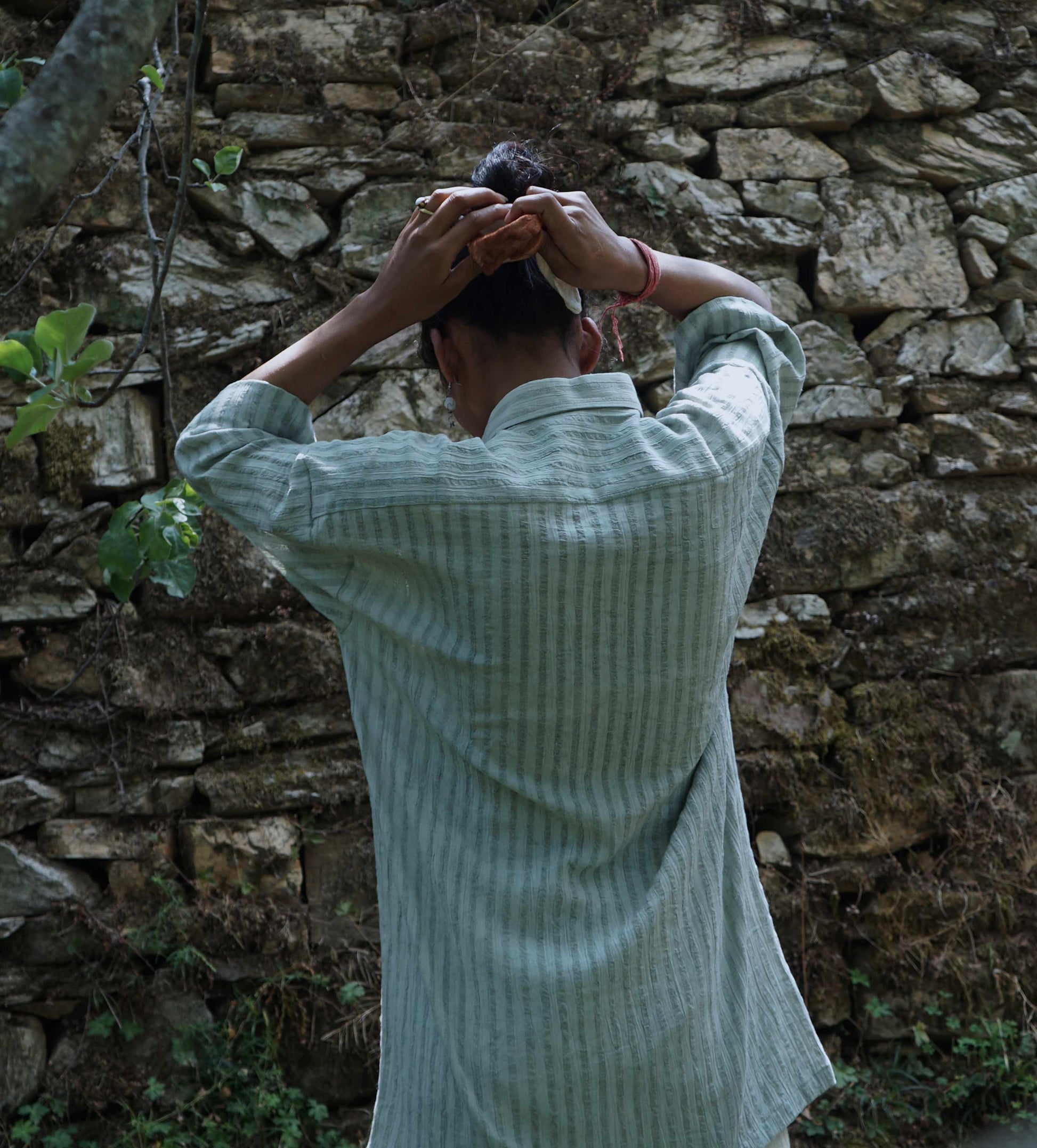 A comfy unisex shirt, made in soft breathable cotton voile. It is dyed using 100% natural plant extract by rural women in village of Raghurampur.