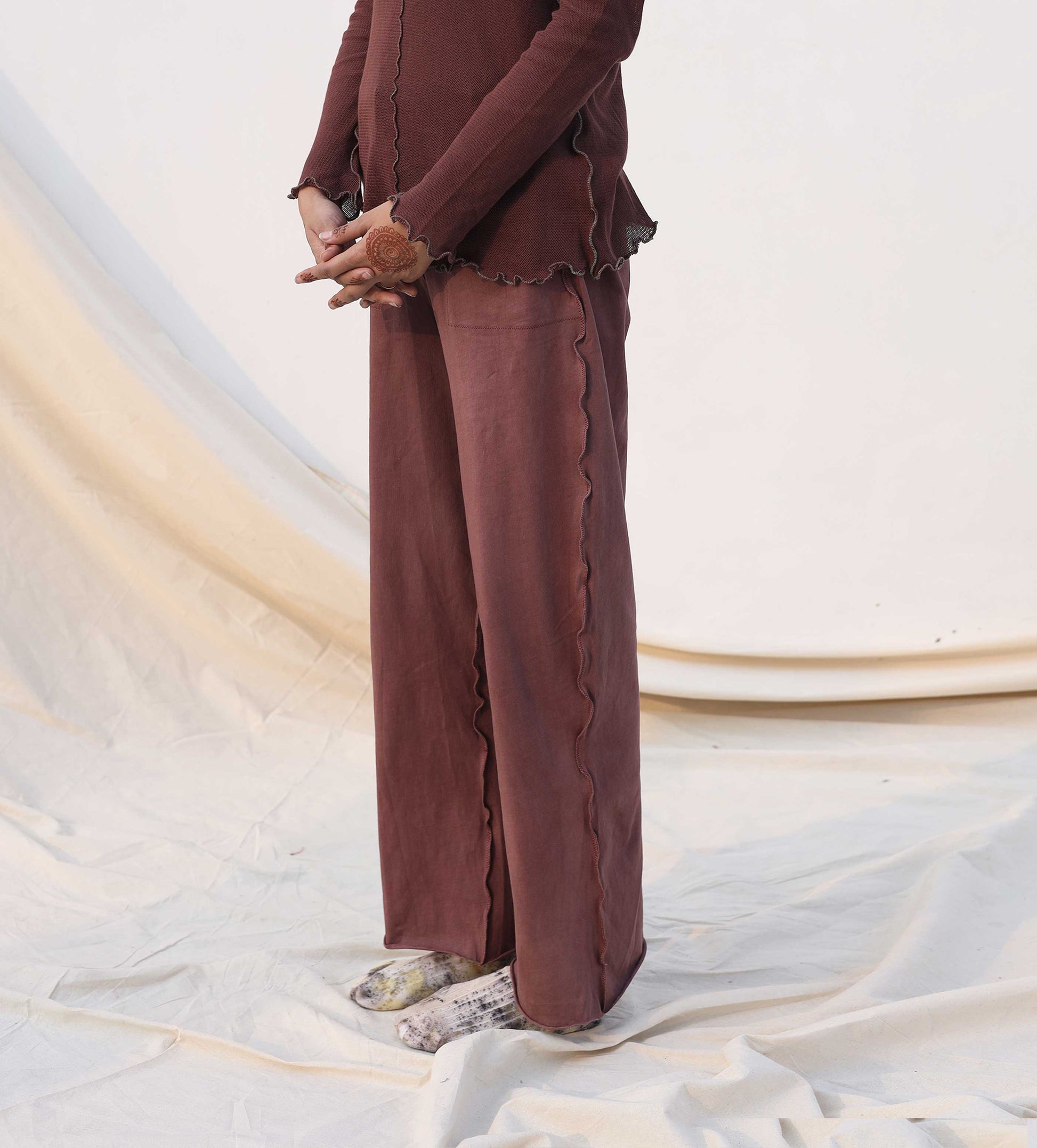 Snug, soft, and stretchy knit pants - facilitating comfort and movement. They are dyed using catechu, myrobalan and maddar extracts.