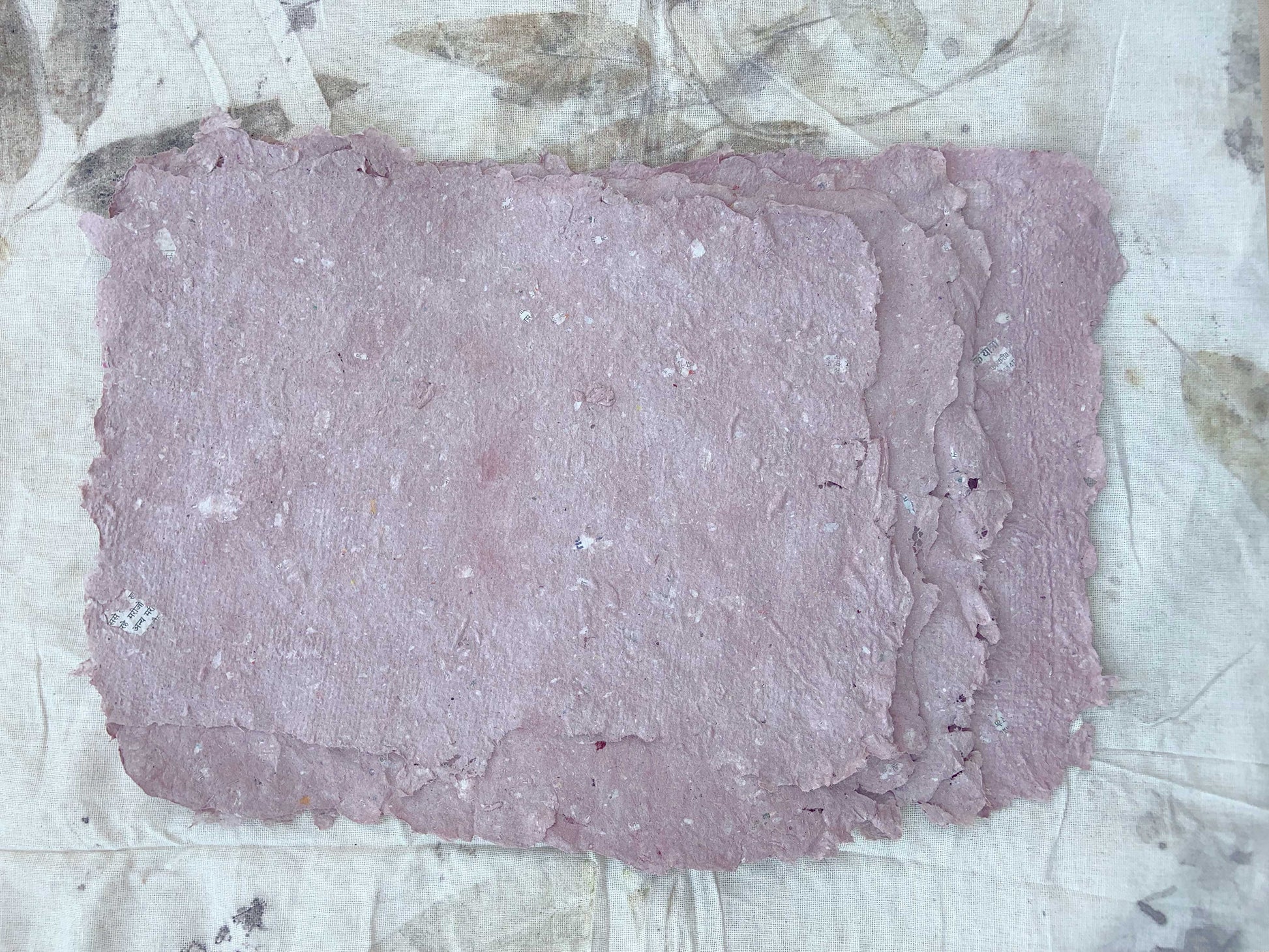 Recycled Hindi newspapers, colored with मंजिष्ठा /madder root dye strain residue.