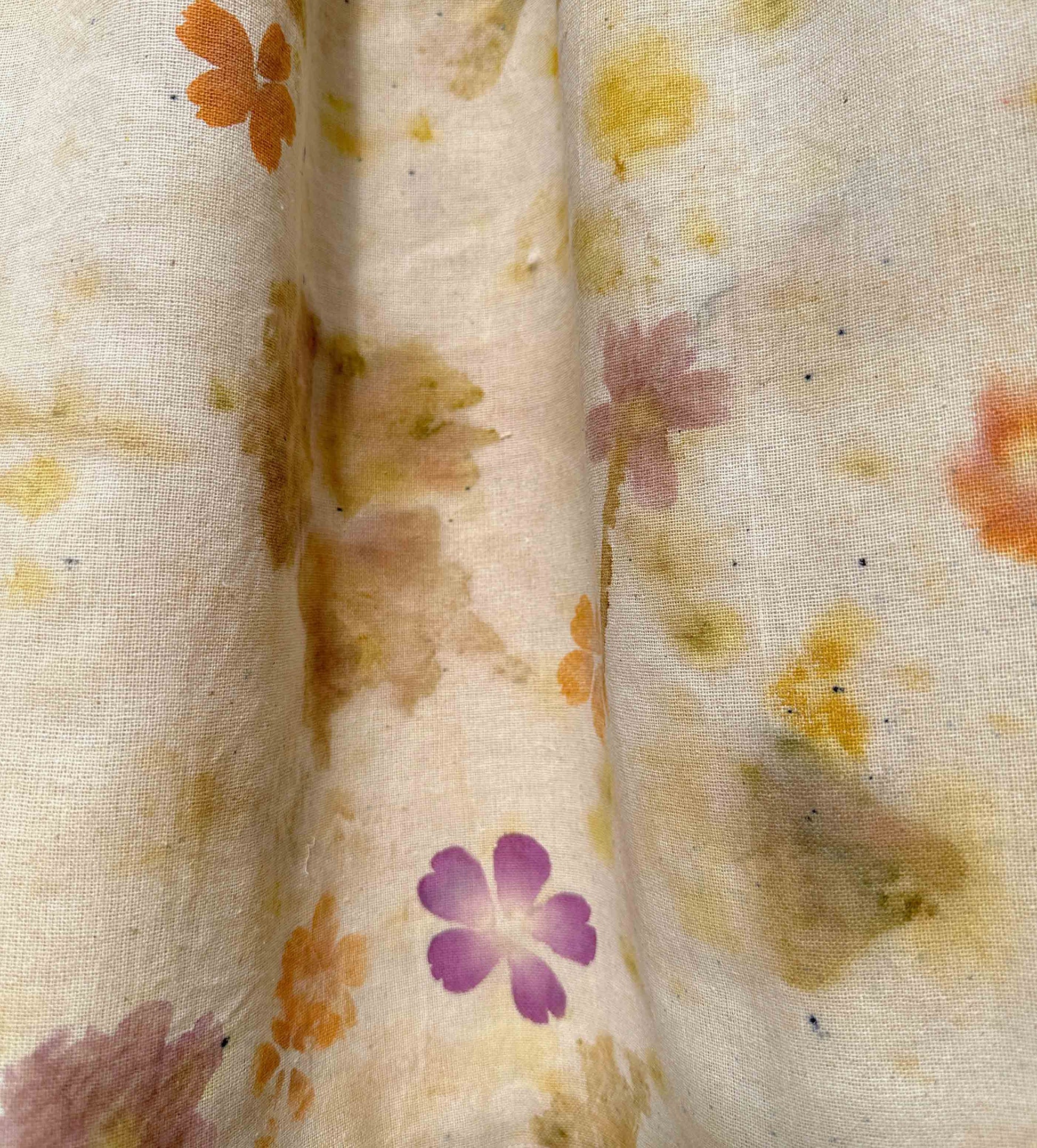 An ode to spring, this dress is imprinted with native flowers from our garden ~ Malati, Aparajita, Gulaab, Genda, all come together to blossom on this hand-woven cotton reverie.