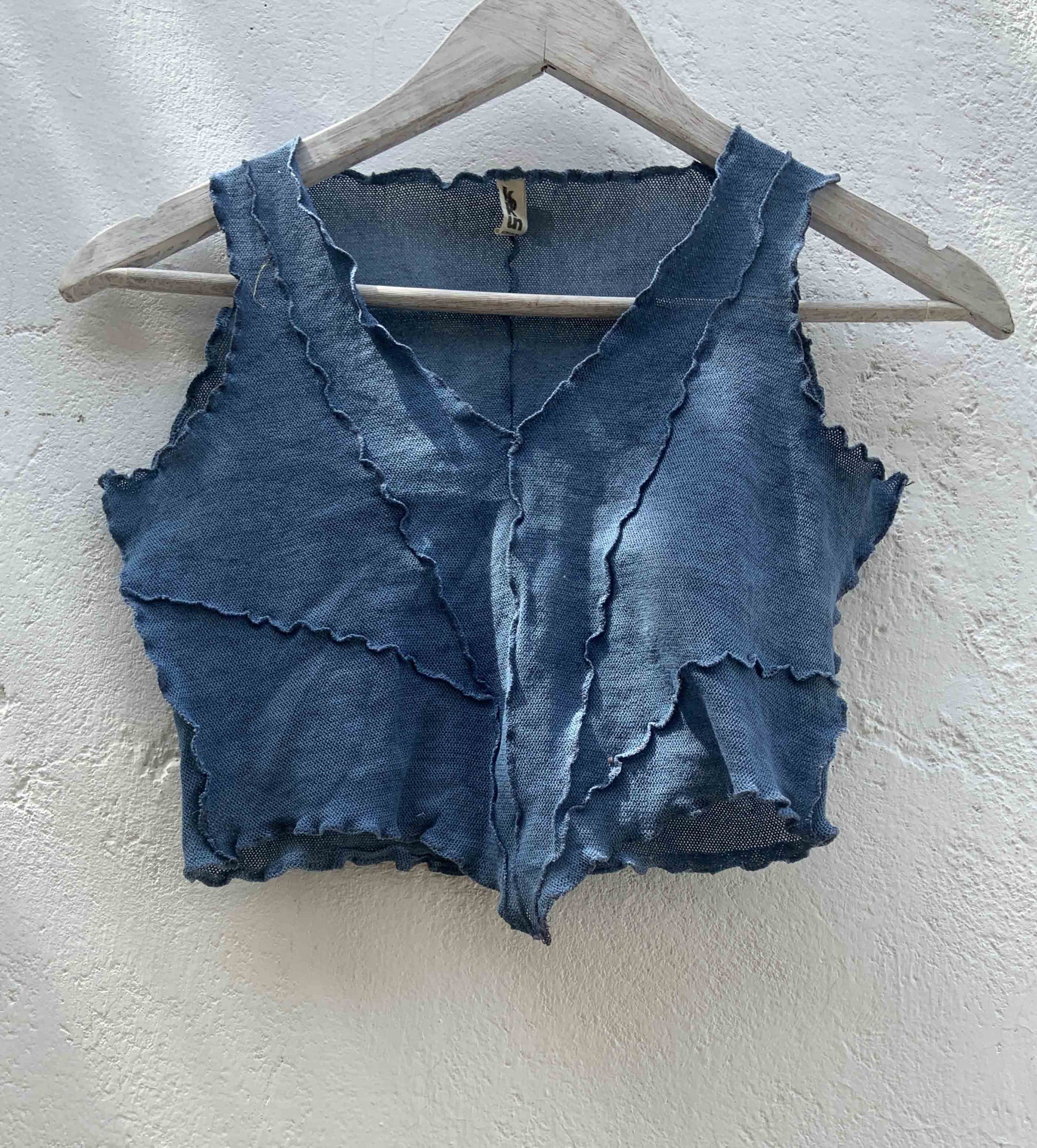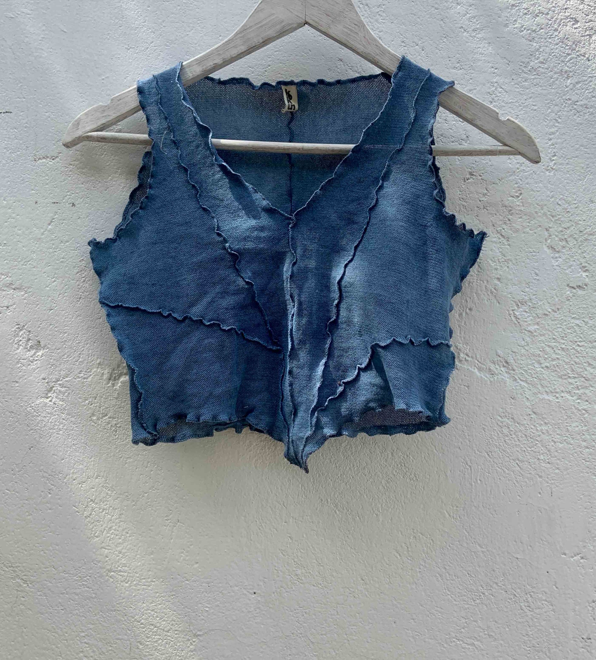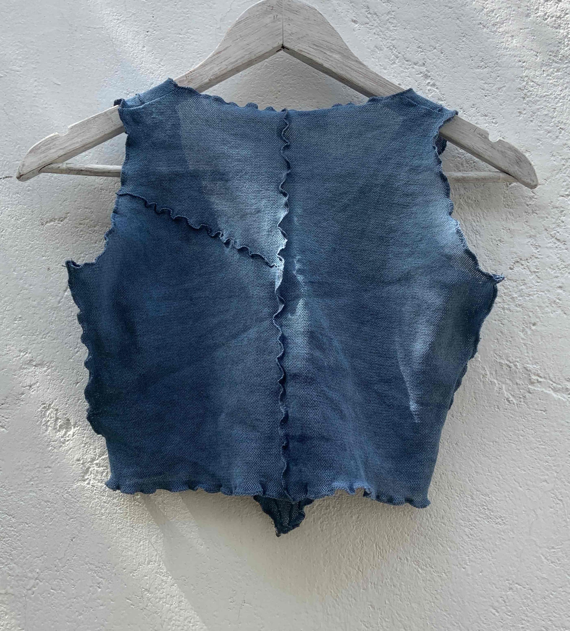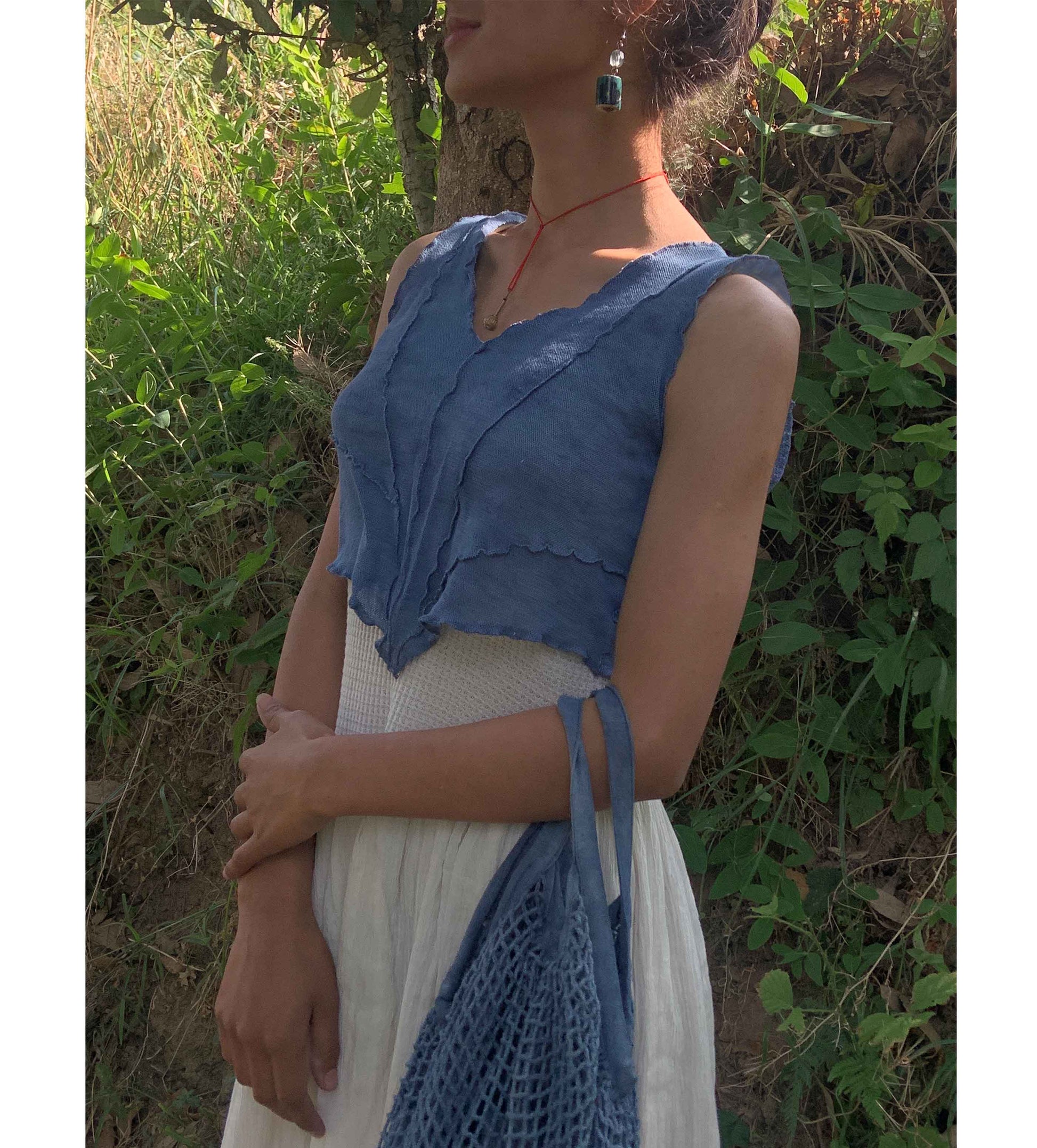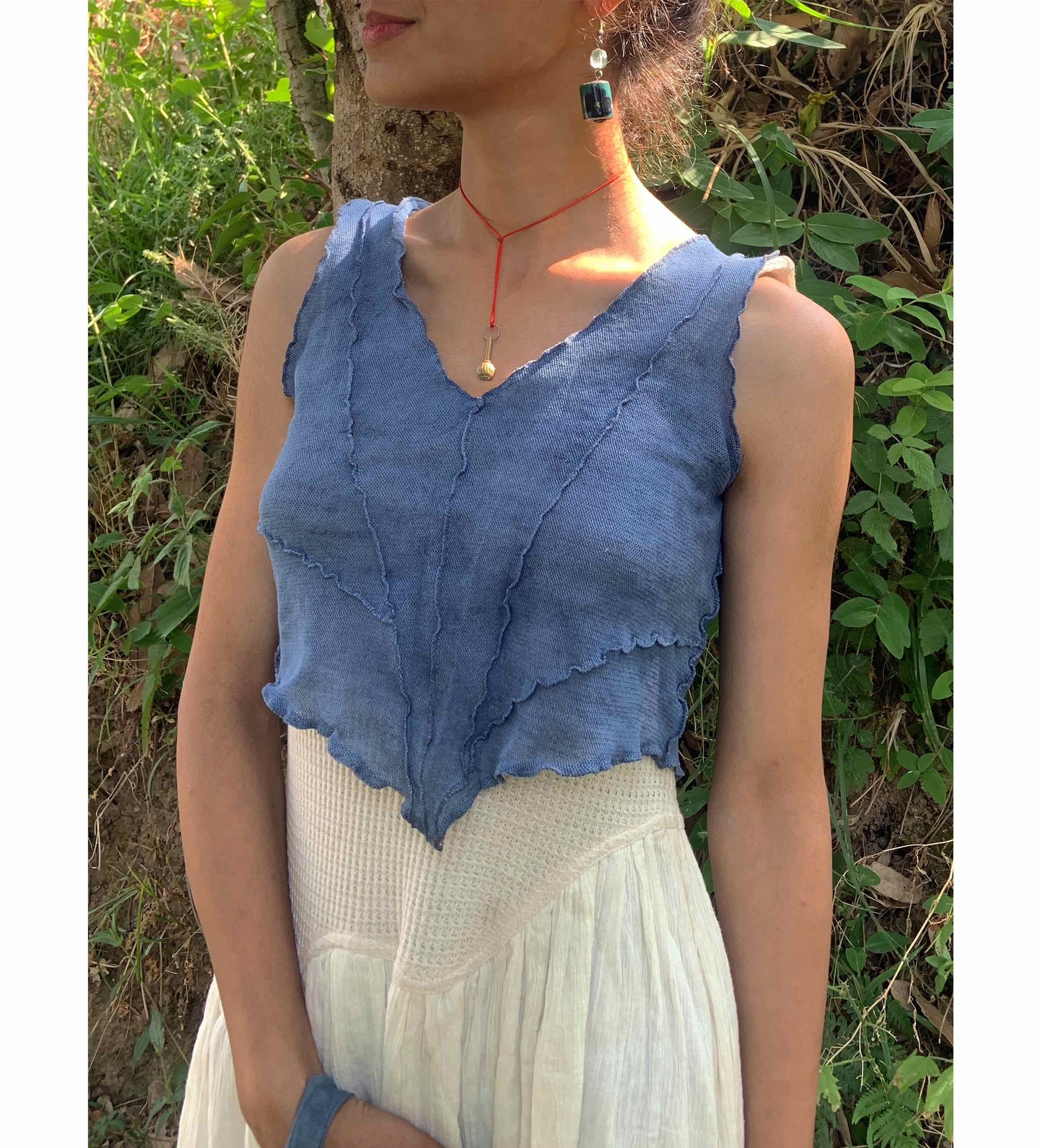 soft wave-like ripples add texture and give form to this top, which stretches to accommodate movement. Tiny pores in cotton knit, make it breathable and very comfortable. It gets its color and fragrance from natural Indigofera tinctoria.