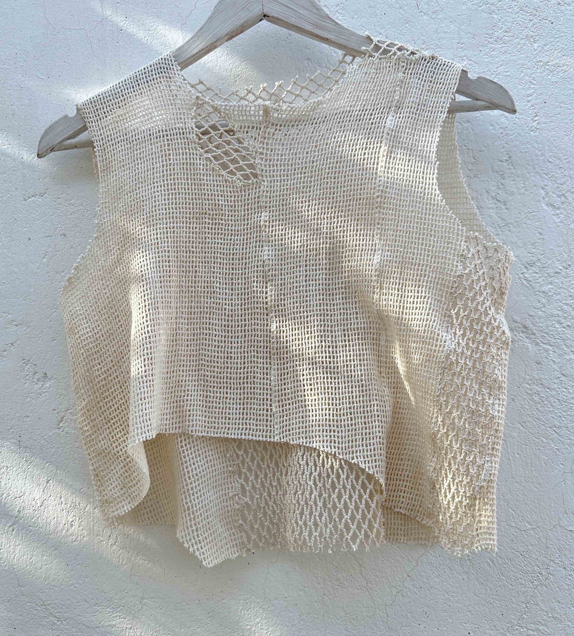 A sheer short summer top that gently hugs the body. Its interesting mesh details play hide and seek with skin.