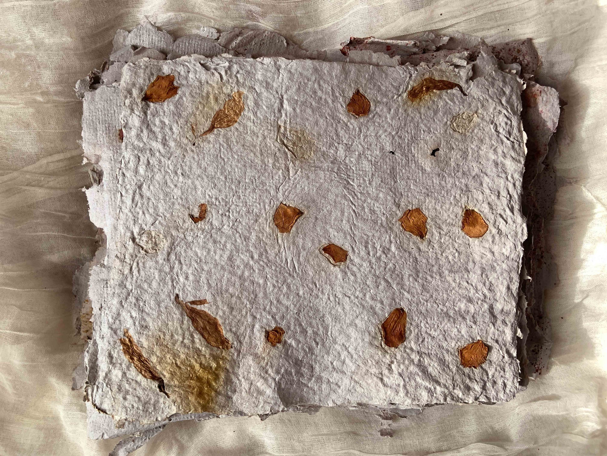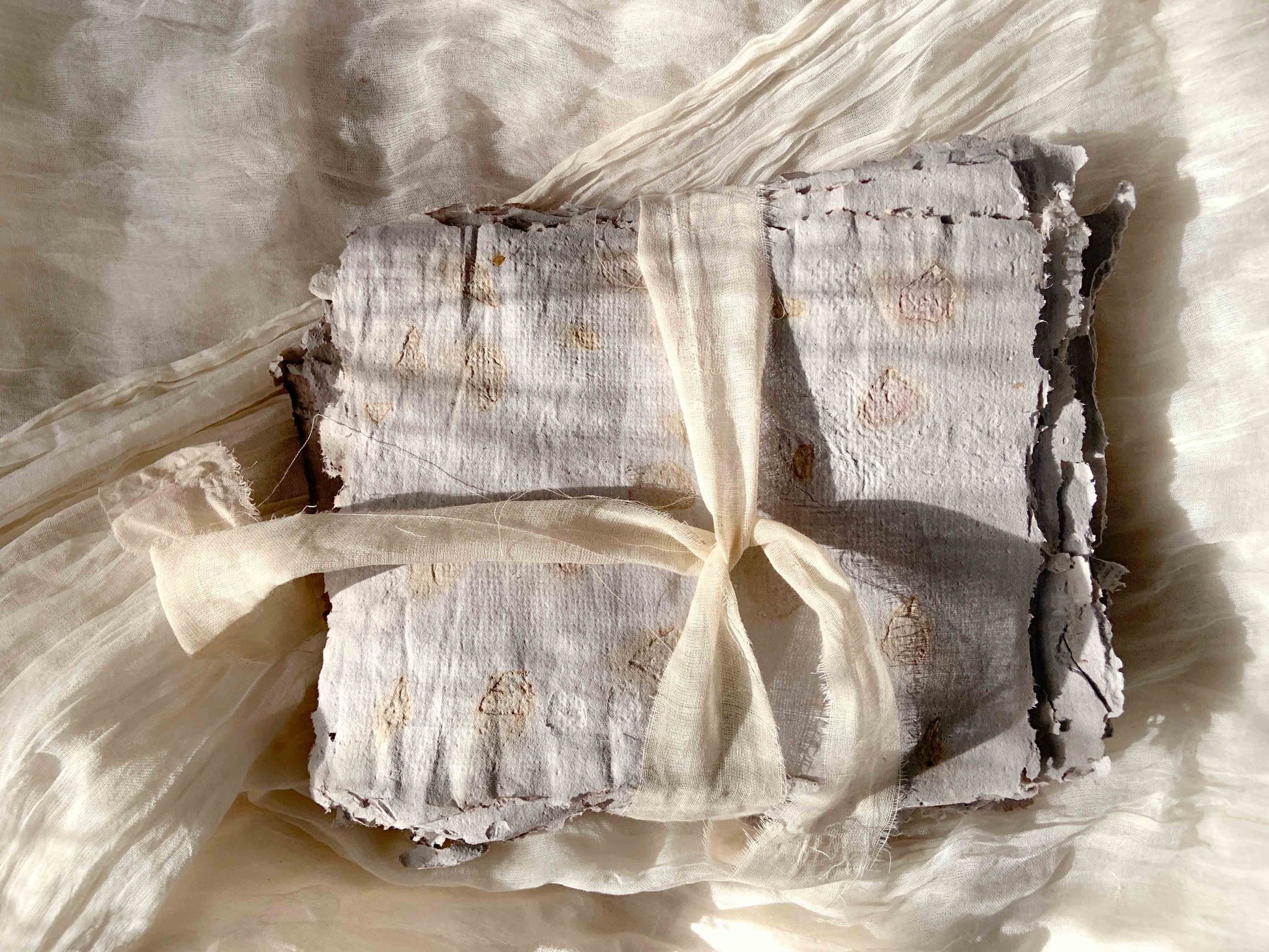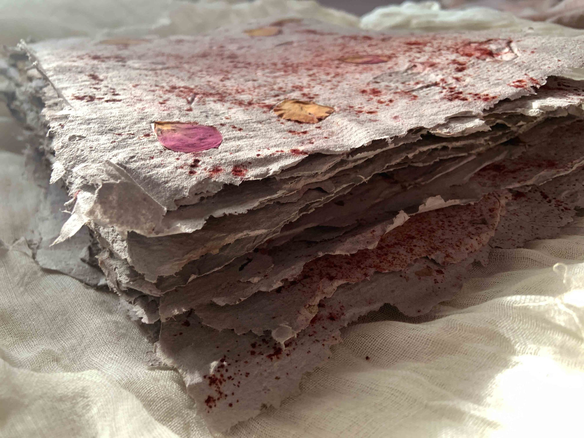 - 10 sheets of handmade paper in different colors (including unbleached grey sheets)