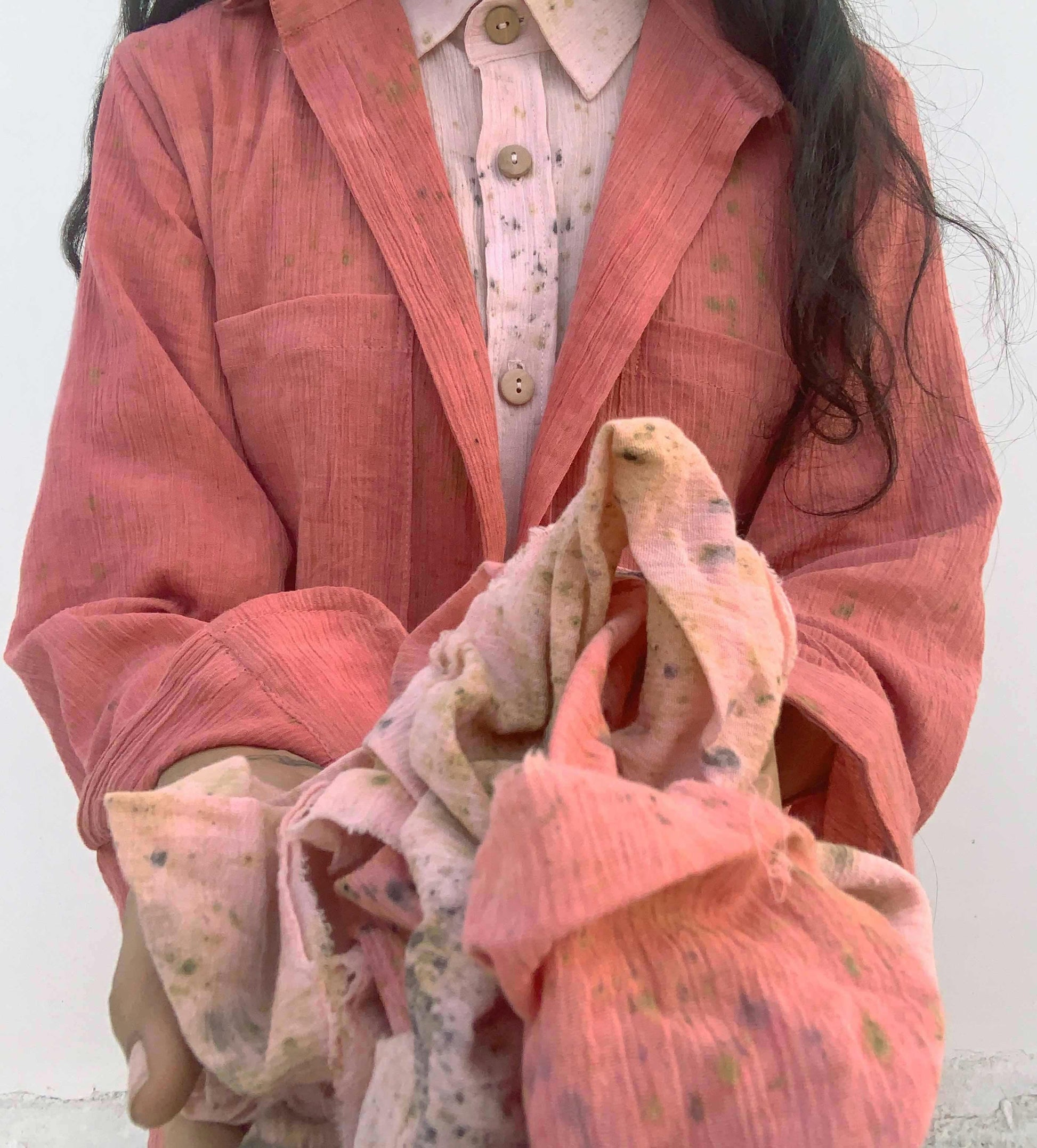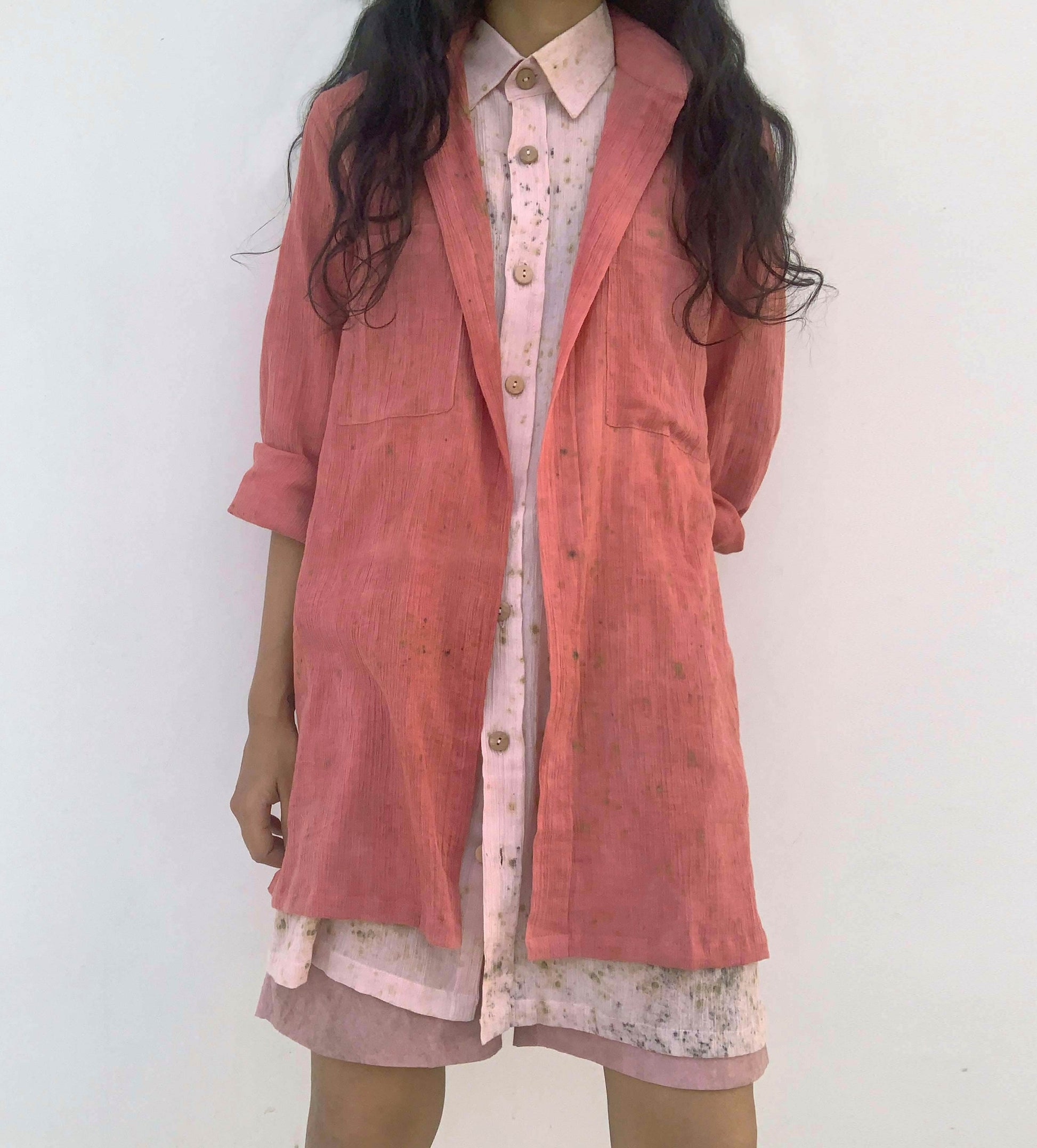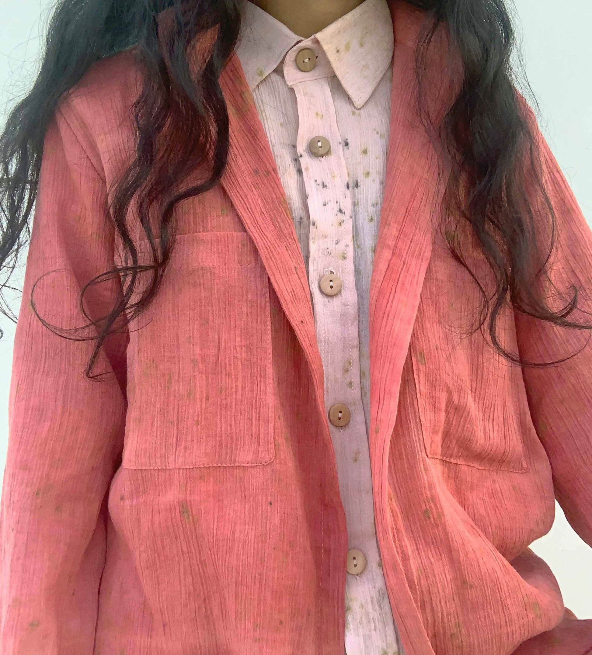 A comfy unisex shirt, dyed by the local women in village Raghurampur, using Indian madder root extract (मंजिष्ठा)