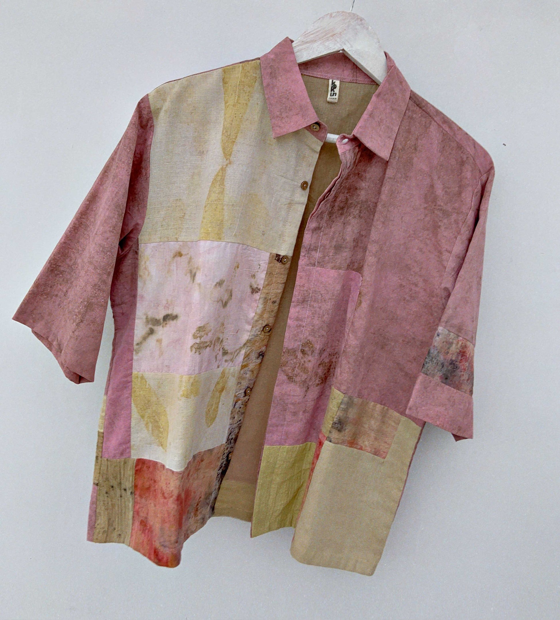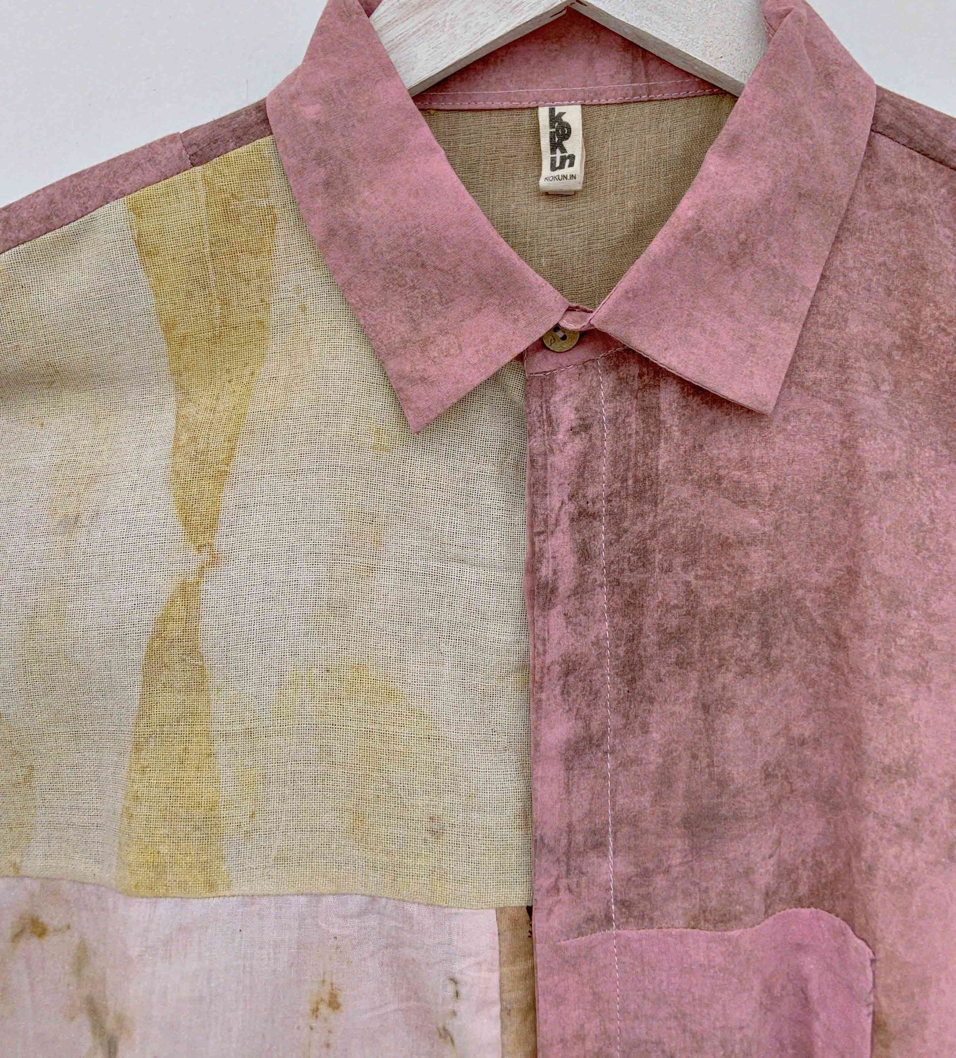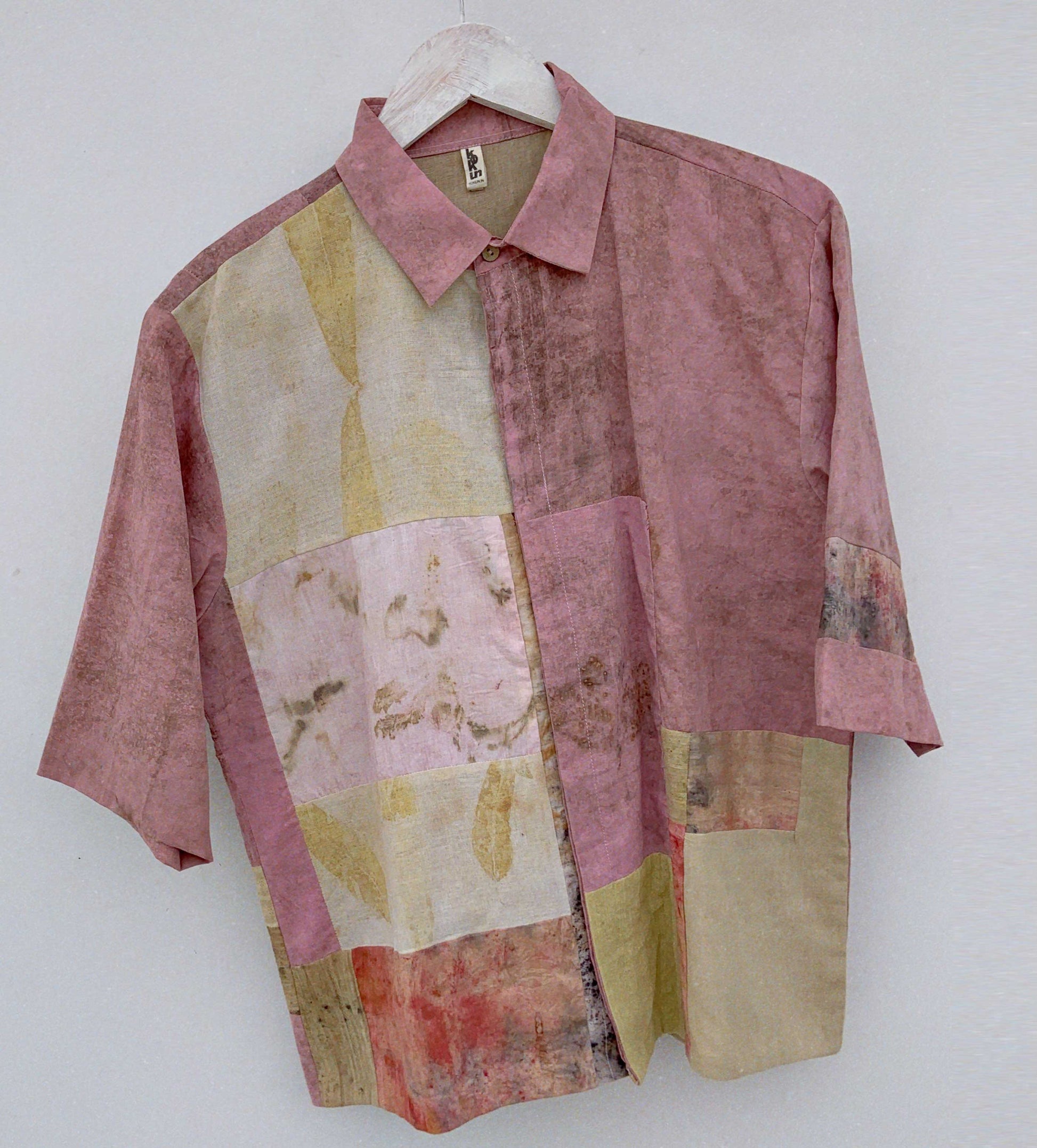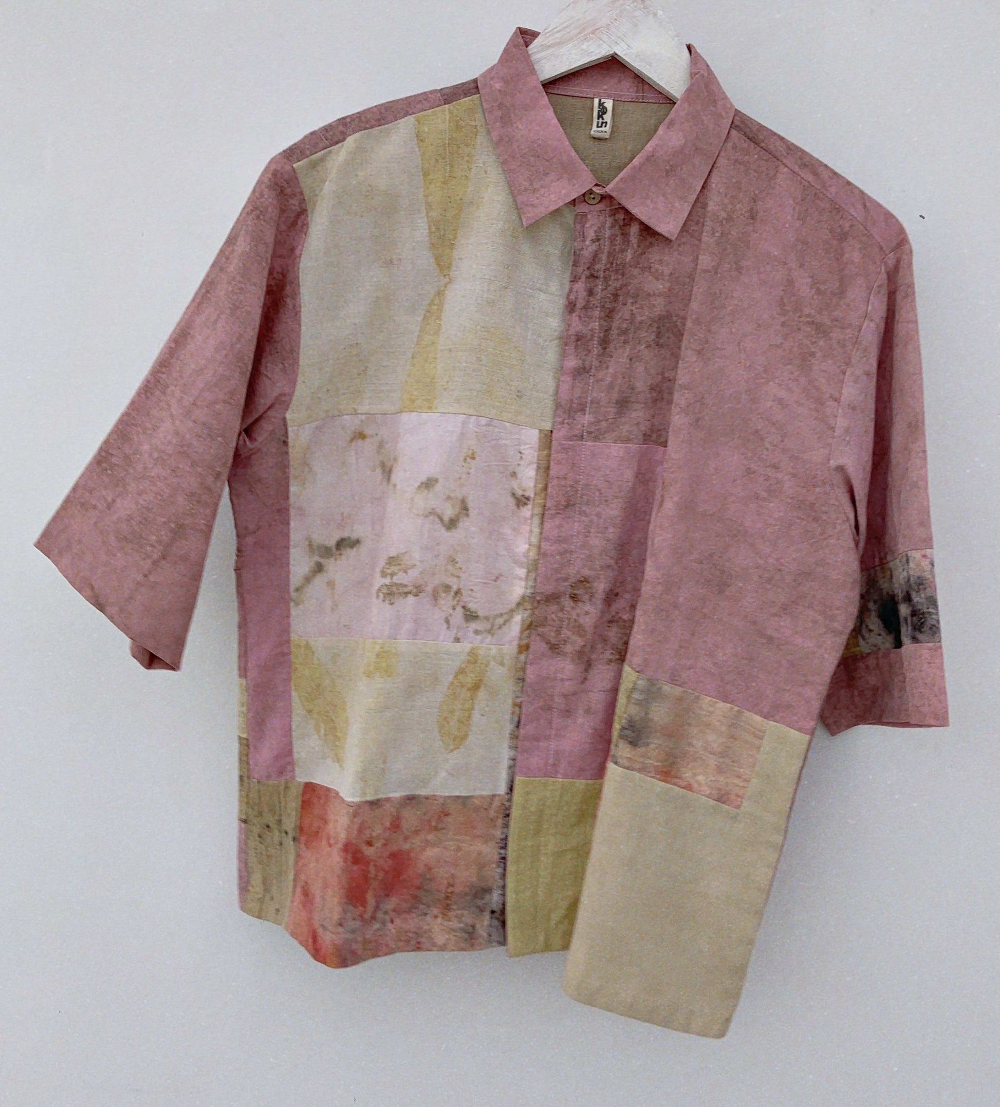 A rare collectible, this one-off shirt is made by sewing handloom cotton pieces from our natural dyeing experiments and fabric spares that are left from our designs. Small, big; like pieces of a puzzle, they come together to make a comfortable shirt, which can be worn by anyone regardless of their gender.