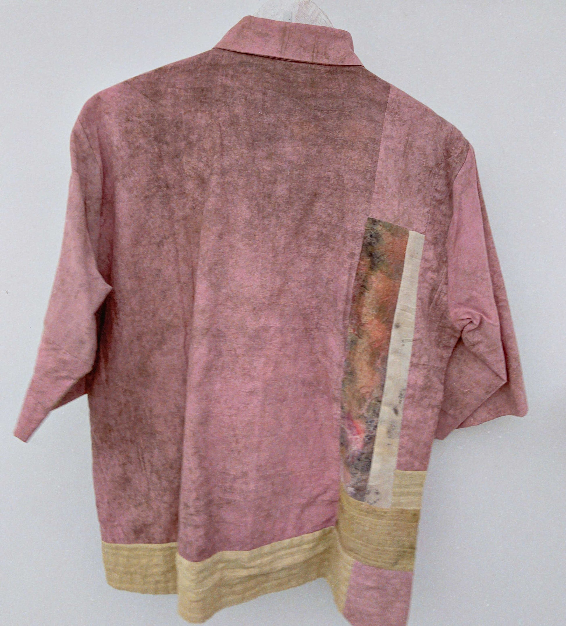 All the fabrics that give this garment a unique character are individually dyed by hand through time, using our homegrown natural dyes. Hibiscus flowers, Indian madder roots, dried myrobalan seeds, Neem leaves, raw turmeric, Malabar plum, Marigolds, Roses; all come at play to create something truly one of a kind.