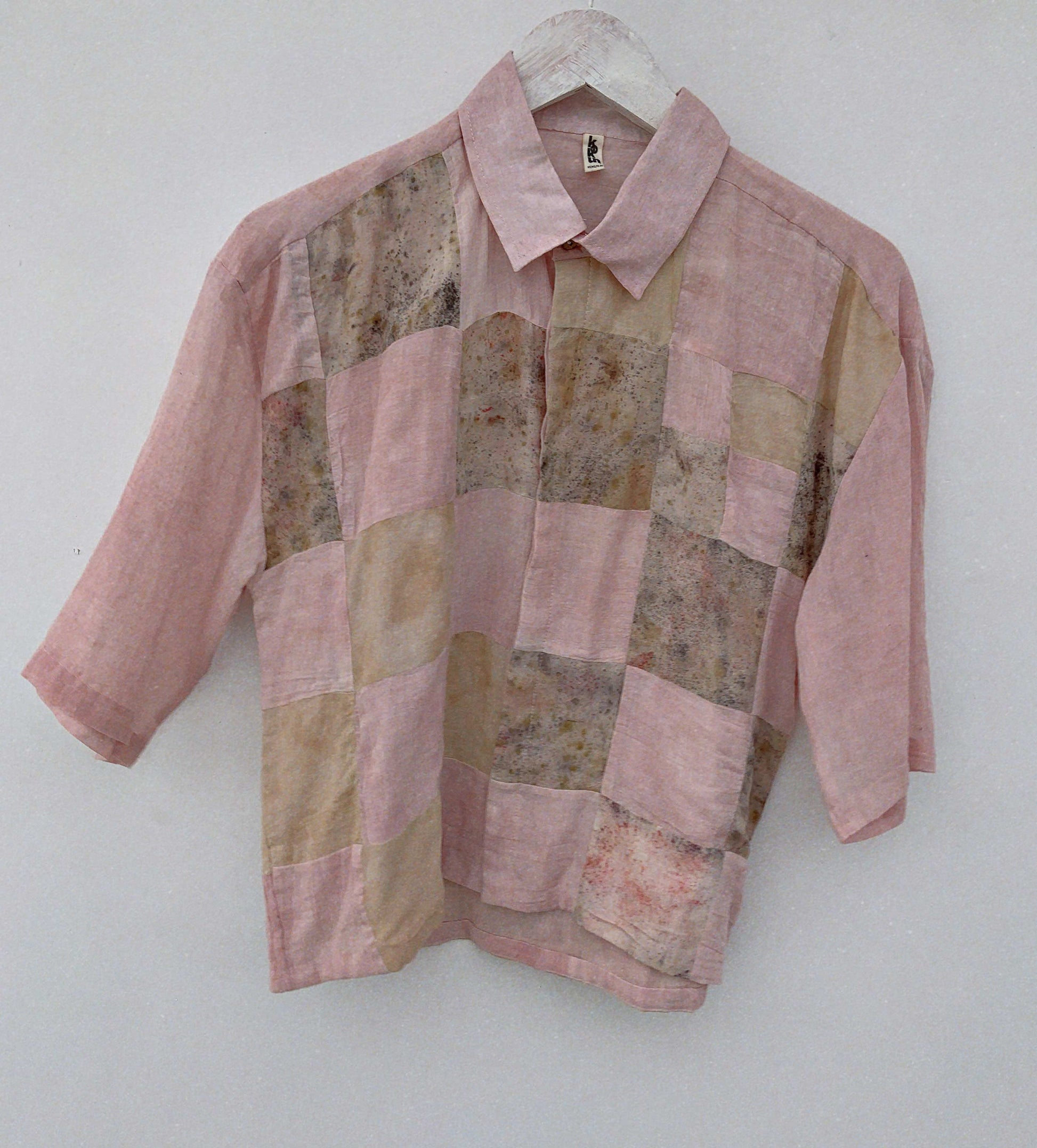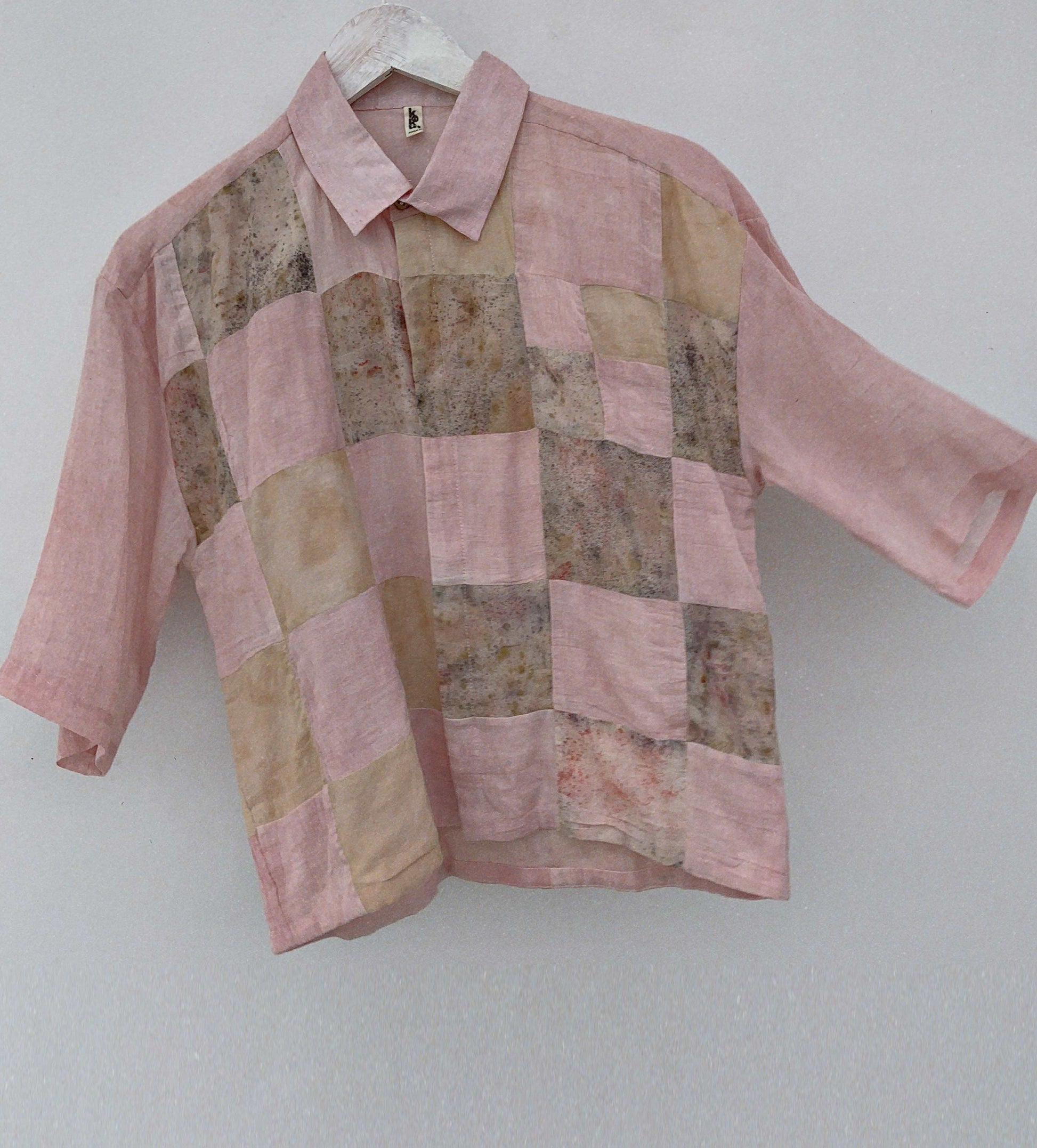 A rare collectible, this one-off shirt is made by sewing handloom cotton pieces from our natural dyeing experiments and fabric spares that are left from our designs. Small, big; like pieces of a puzzle, they come together to make a comfortable shirt, which can be worn by anyone regardless of their gender.