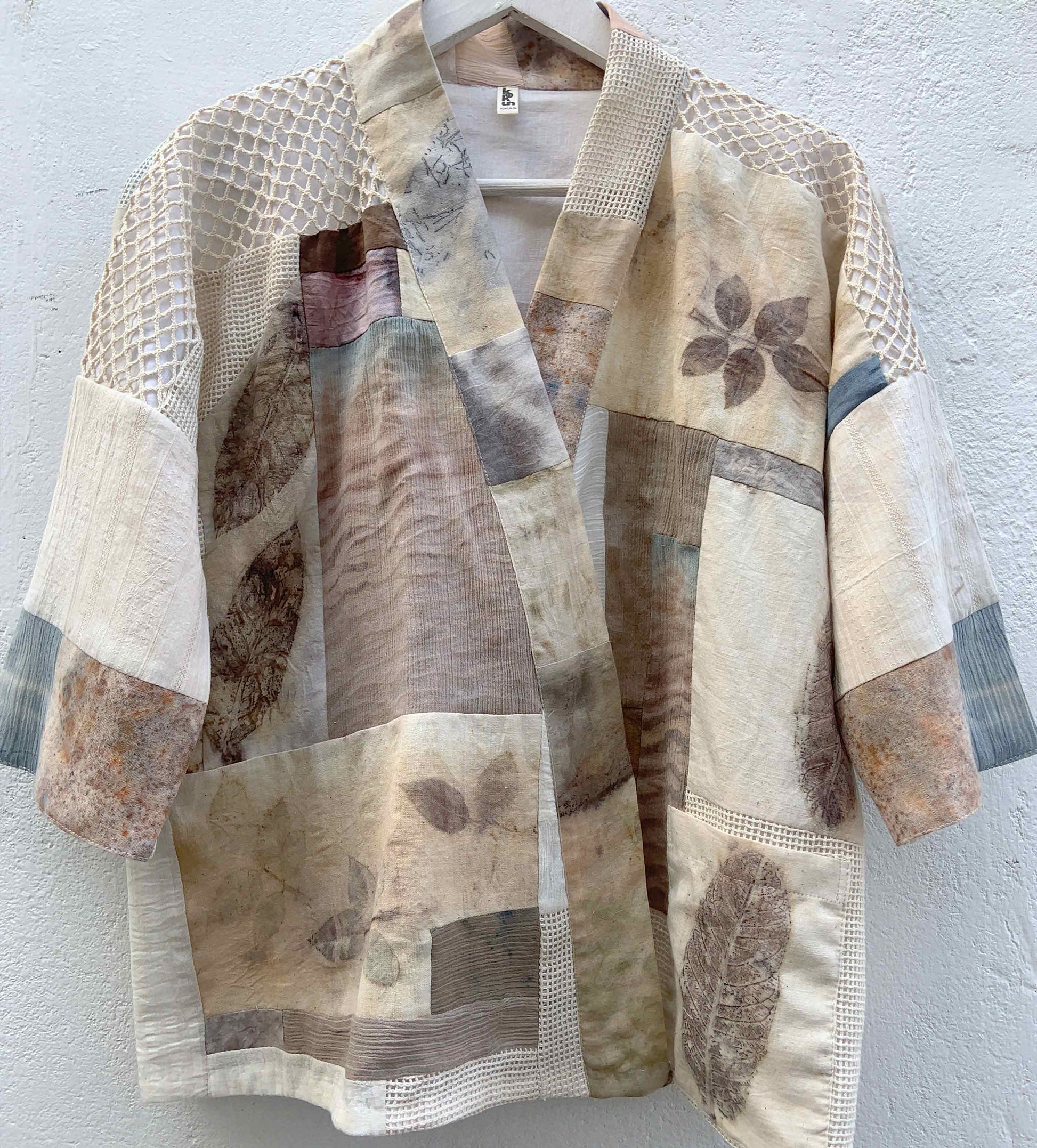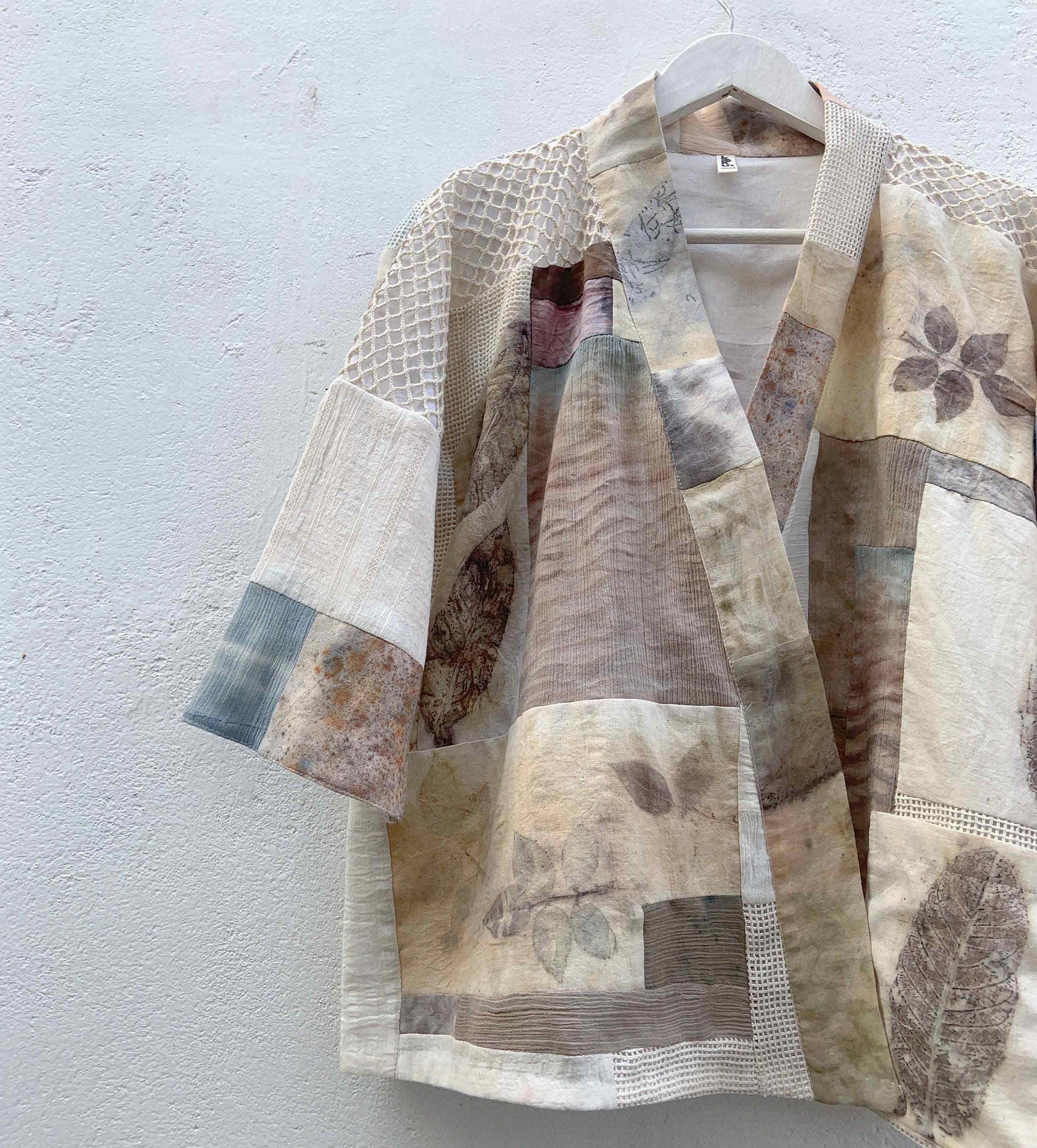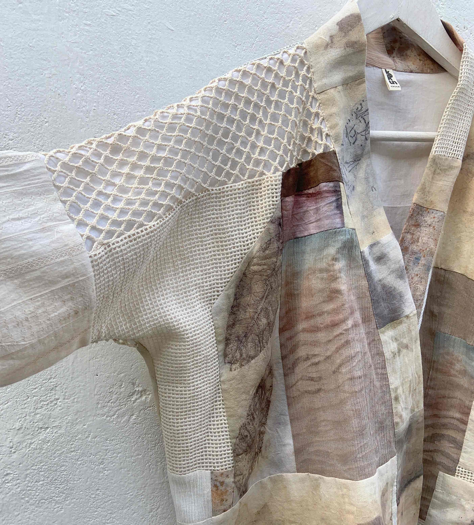 This one-off kimono is made by sewing handloom cotton pieces from our natural dyeing experiments and fabric spares that are left from our designs. Small, big; like pieces of a puzzle, they come together to make this layering piece, which can be worn by anyone regardless of their gender.