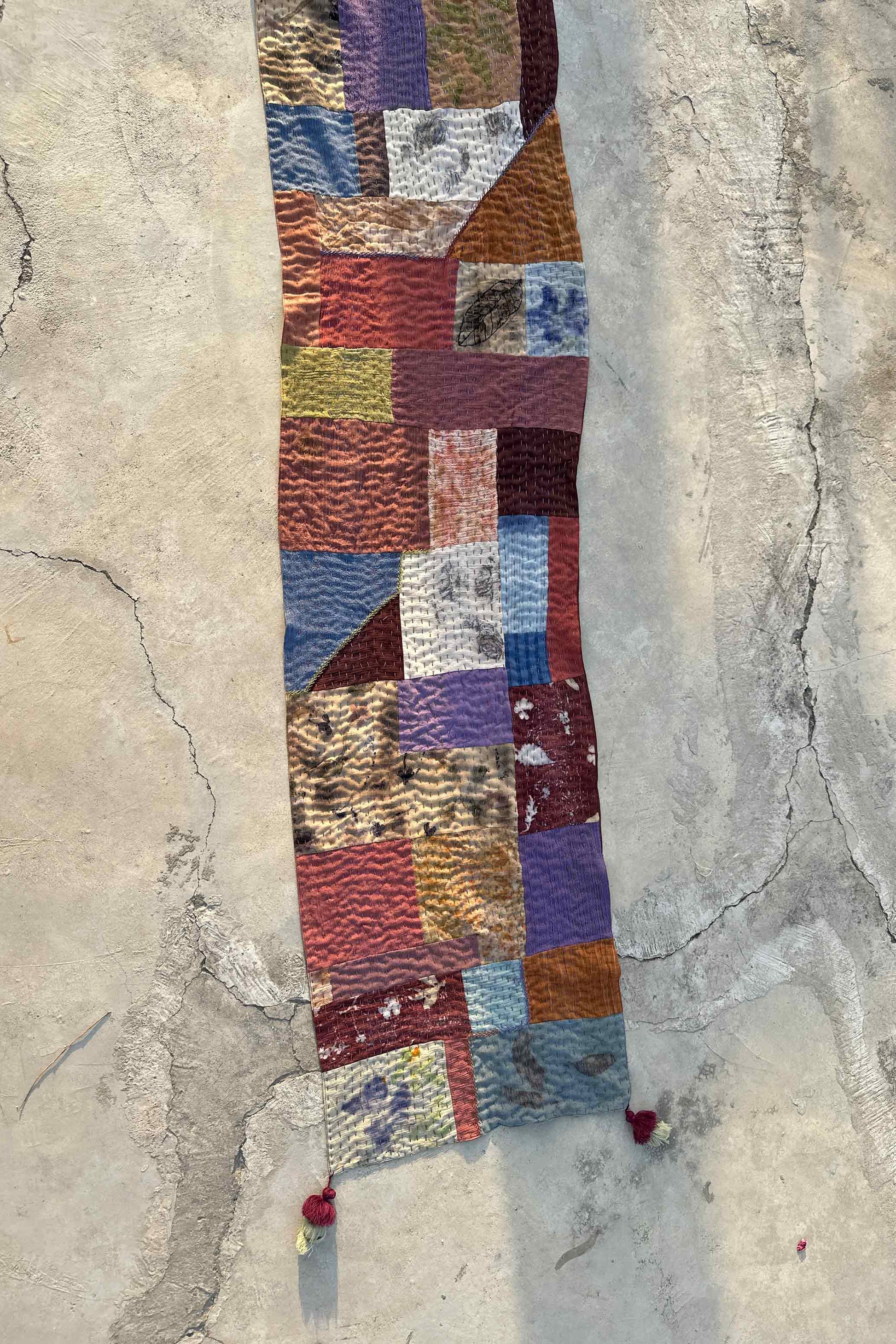 A one-of-a-kind collectible, made by combining fabric remains from our natural dyeing experiments.