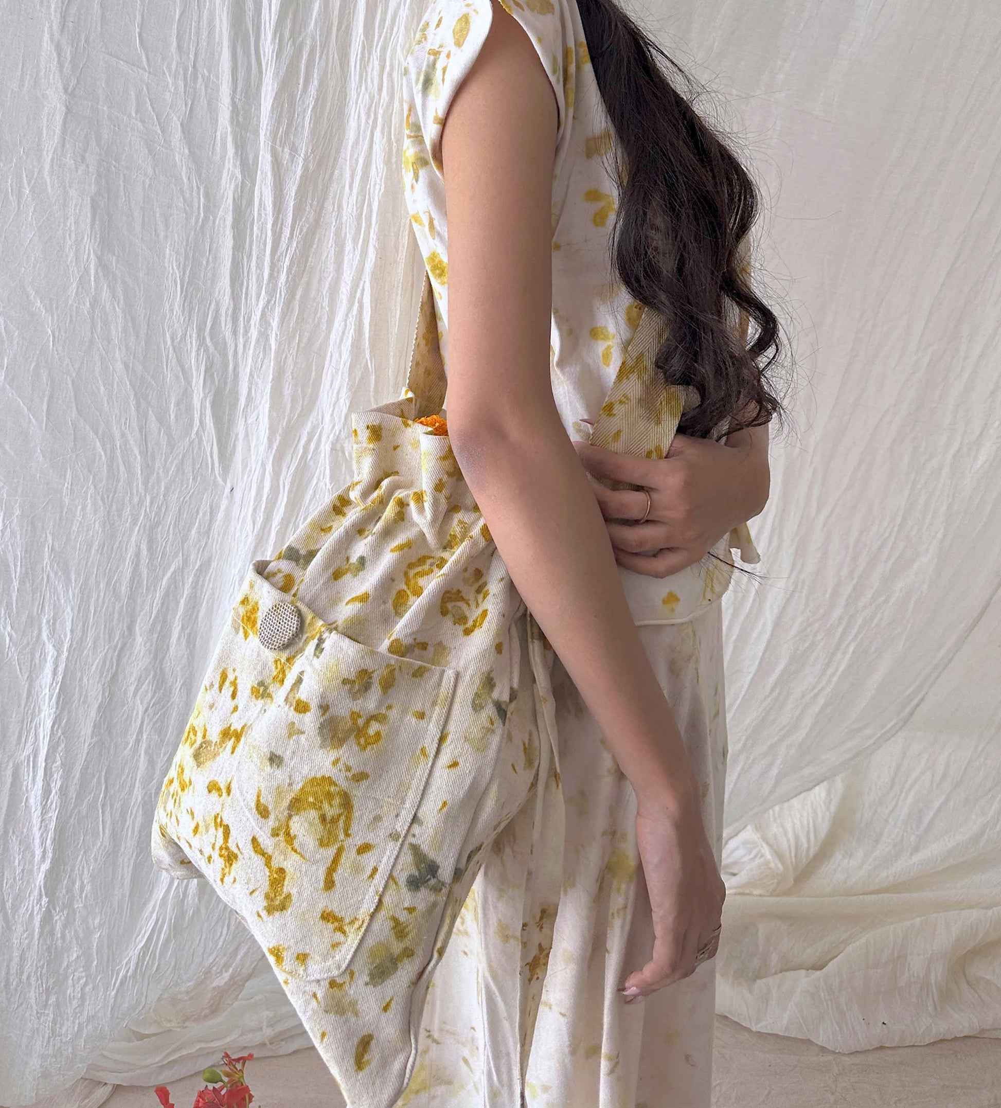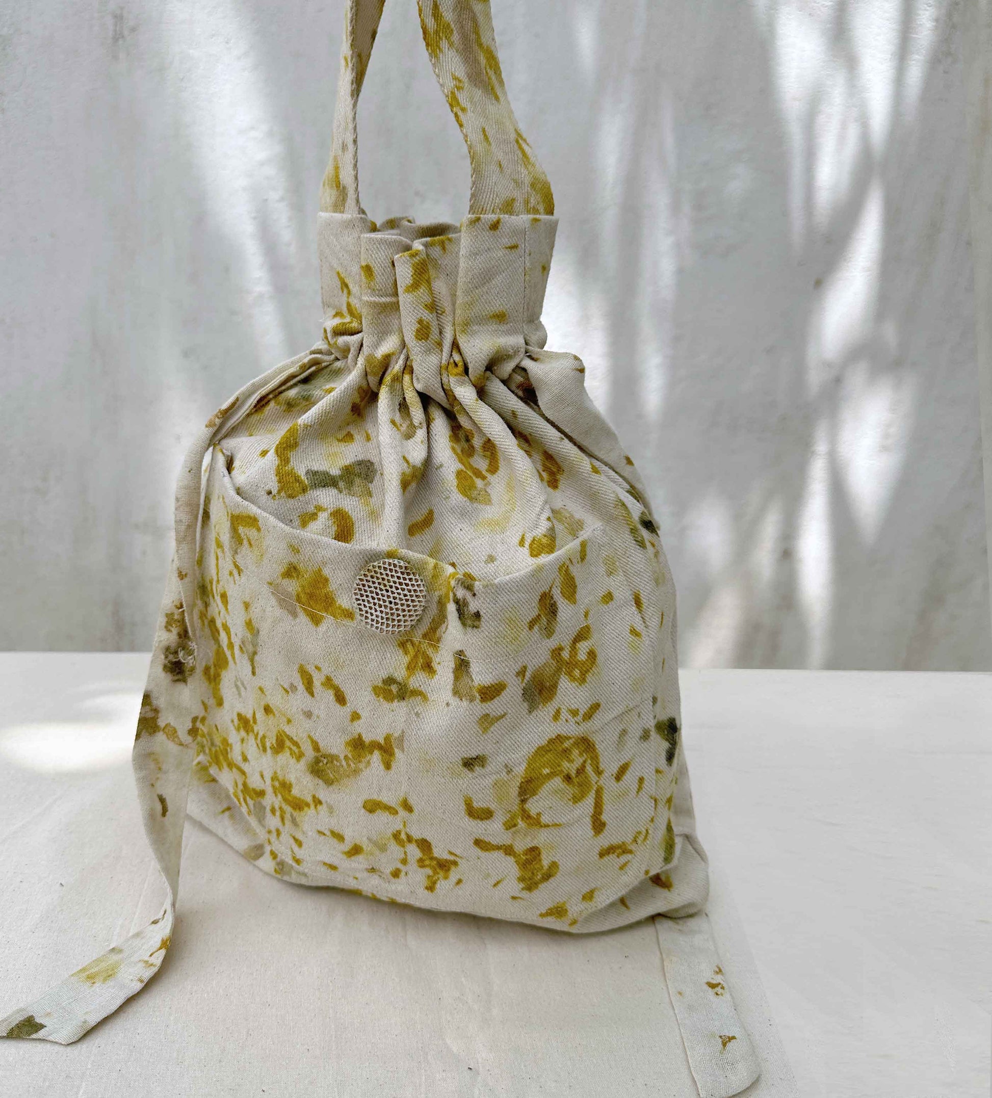 Inspired by the great Indian 'jhola' but much more functional, in terms of closure - with the help of drawstrings, to keep things from falling off.