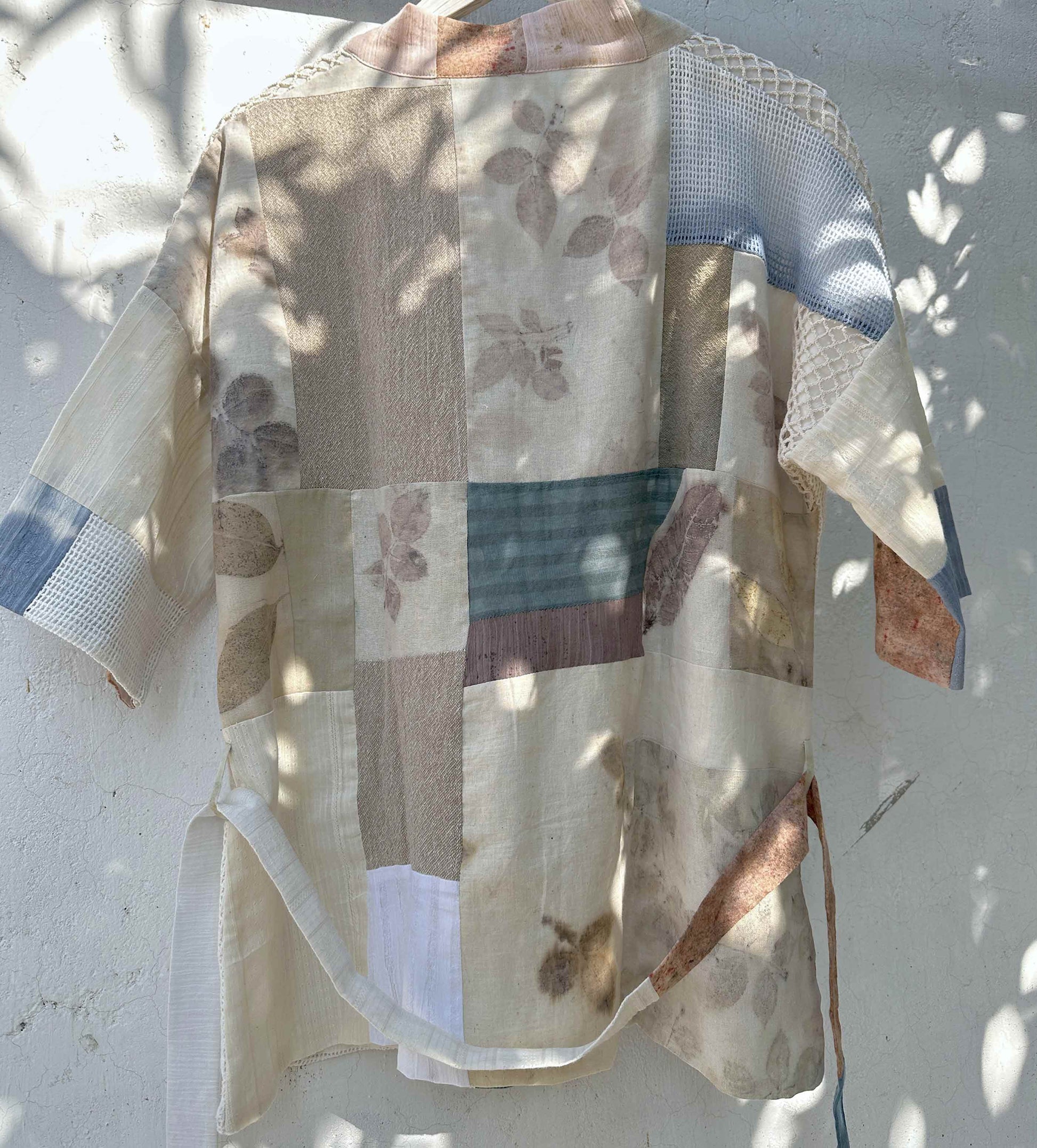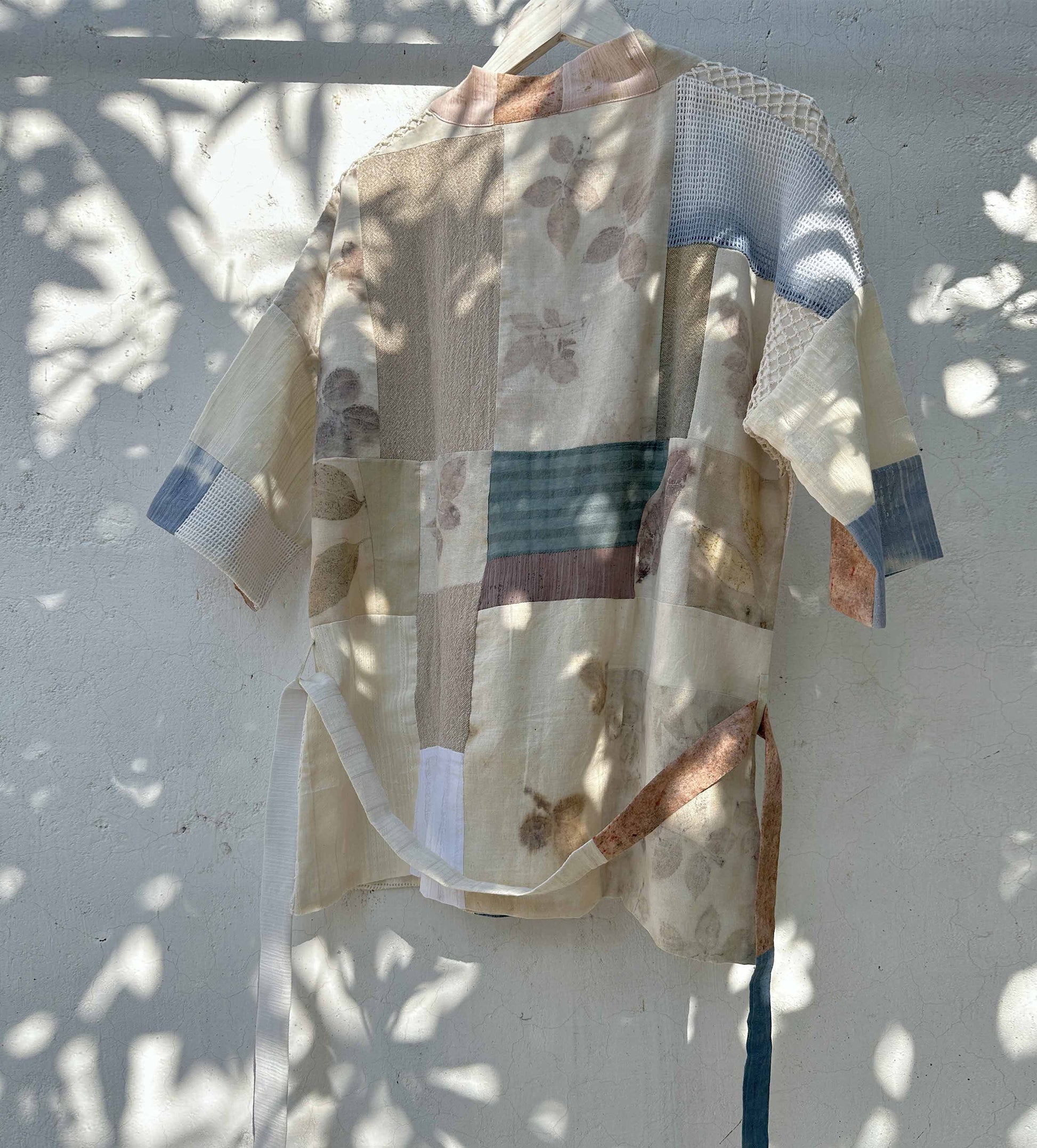 An ode to summer and a celebration of earth’s fleeting beauty, this upcycled, one-off kimono is made by sewing handloom cotton pieces from our natural dyeing experiments and fabric spares that are left from our designs. Small, big; like pieces of a puzzle, they come together to make this layering piece, which can be worn by anyone regardless of their gender.