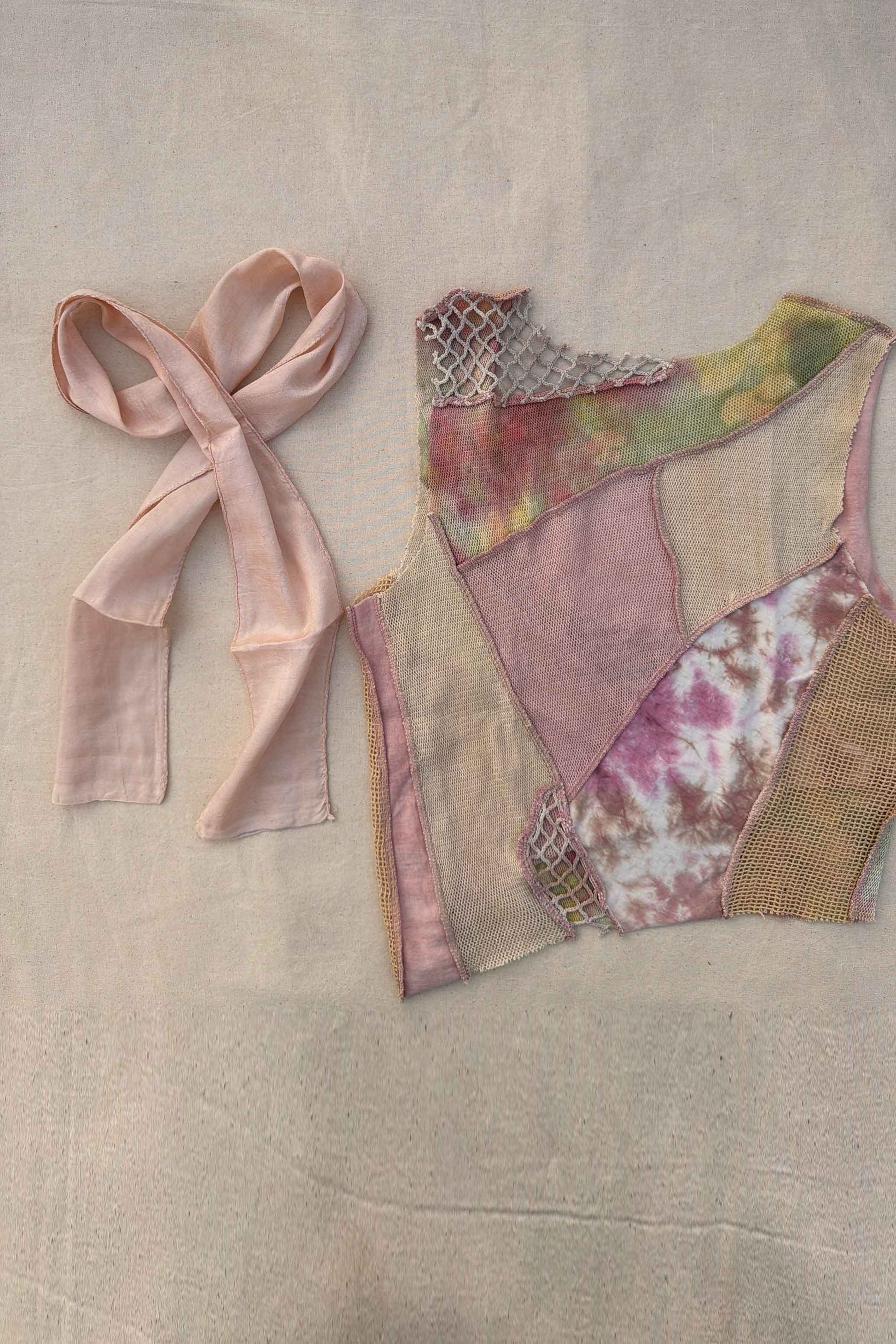 ❀ A zero waste up-cycled top, stretchable and patch-worked from plant-dyed remnants.